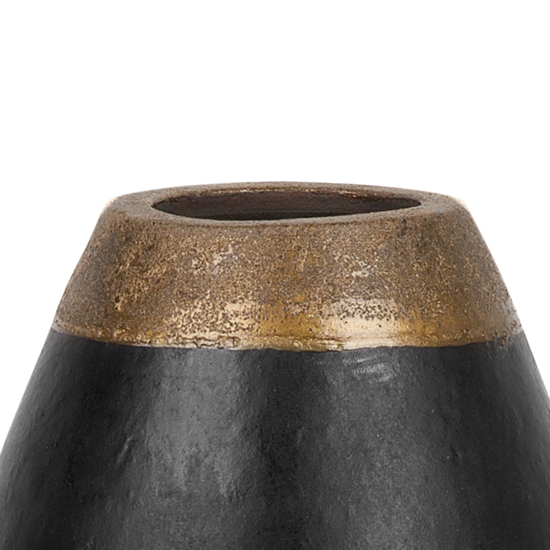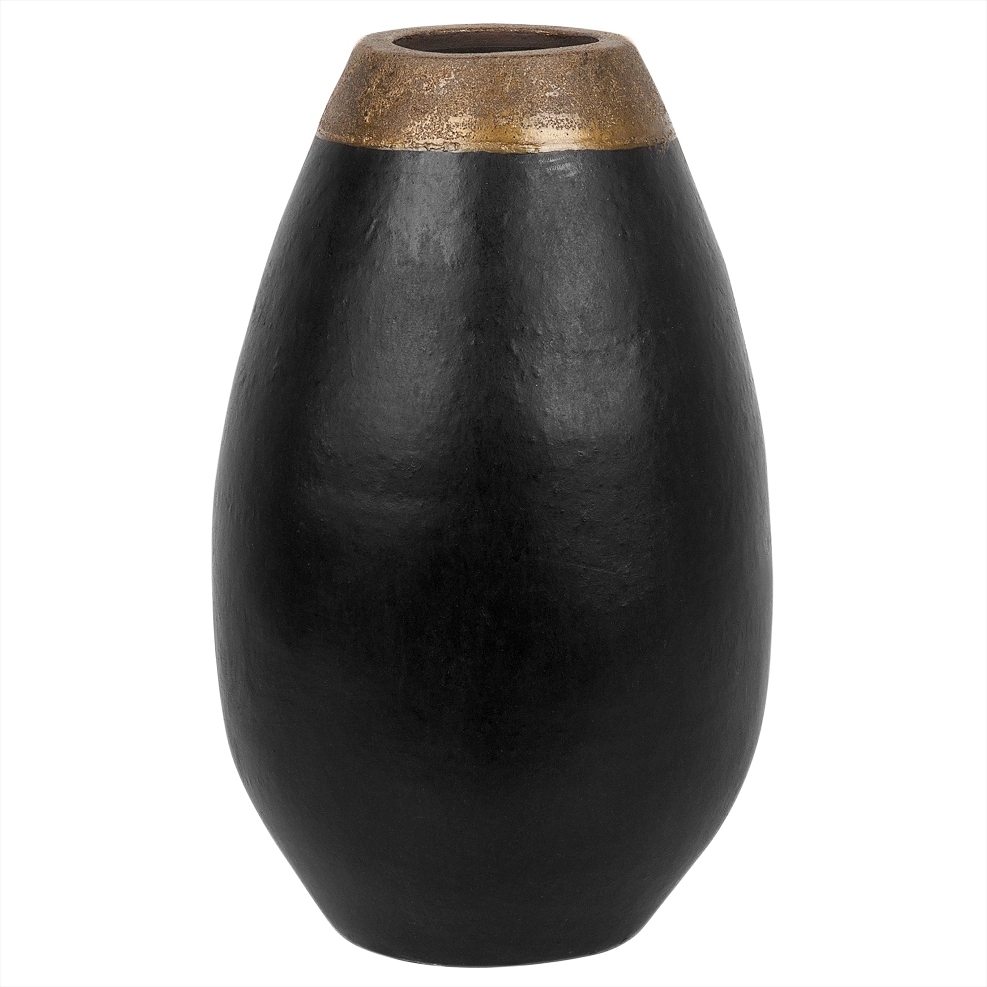 Moderne decoratievaas met gouden accent. Deze keramische vaas past uitstekend in elk interieur, van de gang tot de woon- of eetkamer. Door het eenvoudige ontwerp, de afgeronde vorm en de neutrale zwarte afwerking past het goed in alle moderne, eclectische en vintage geïnspireerde huisdecors. Het is een elegant accentstuk op zichzelf, maar zal ook zeker goed naar voren komen met mooie kunstbloemen. Deze vaas is dus alleen voor decoratieve doeleinden bestemd. We adviseren je om er enkel decoratie en bloemen die geen water nodig hebben in te stoppen. Details: Producttype: Decovaas Stijl: Retro Kleur: Zwart Soort materiaal: Keramiek Hoofdmateriaal: Keramiek Handgemaakt: Ja Afmetingen: Diepte: 20 cm Breedte: 20 cm Hoogte: 32 cm Gewicht: 3 kg Aanbod omvat: 1 x Vaas Belangrijkste eigenschappen: Een unieke eye-catcher, Decoratief en functioneel, Hoge kwaliteit, Handgemaakte precisie, Lichtgewicht en makkelijk vervoerbaar Montageinformatie: Geen montage benodigd Extra informatie: De vaas heeft enkel een decoratieve functie. Gebruik deze vaas daarom niet met water. Elk stuk is handgemaakt en uniek. Daarom kan de tint en het formaat licht afwijken van de afbeeldingen. Onderhoudstips: Keramiek: 1.Maak schoon met een mild schoonmaakmiddel en een zachte doek. Maak daarna goed droog.