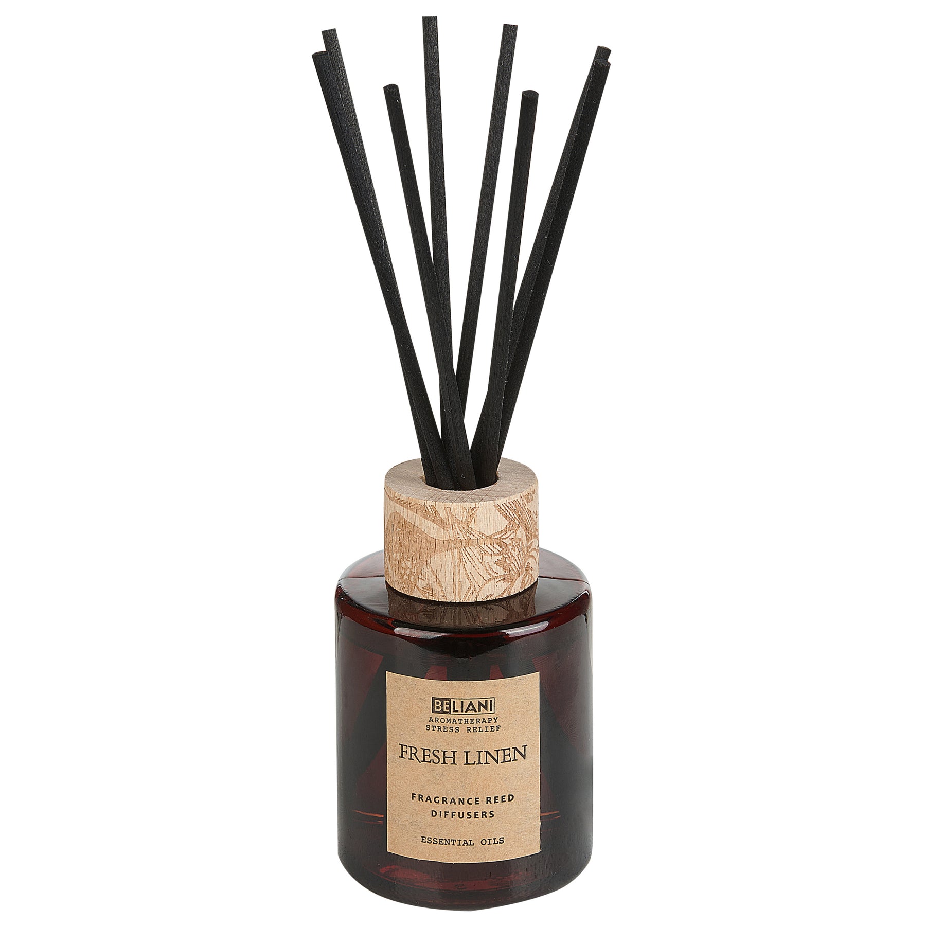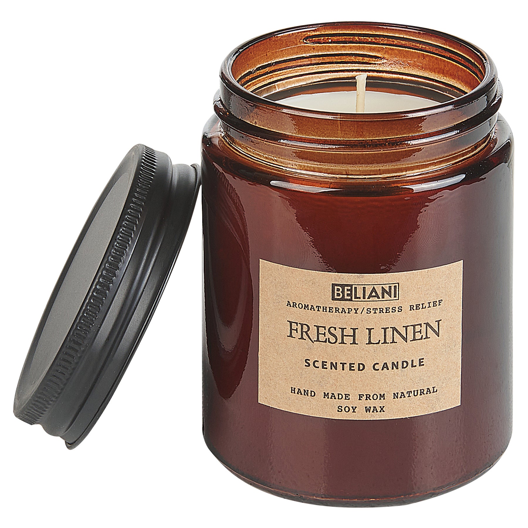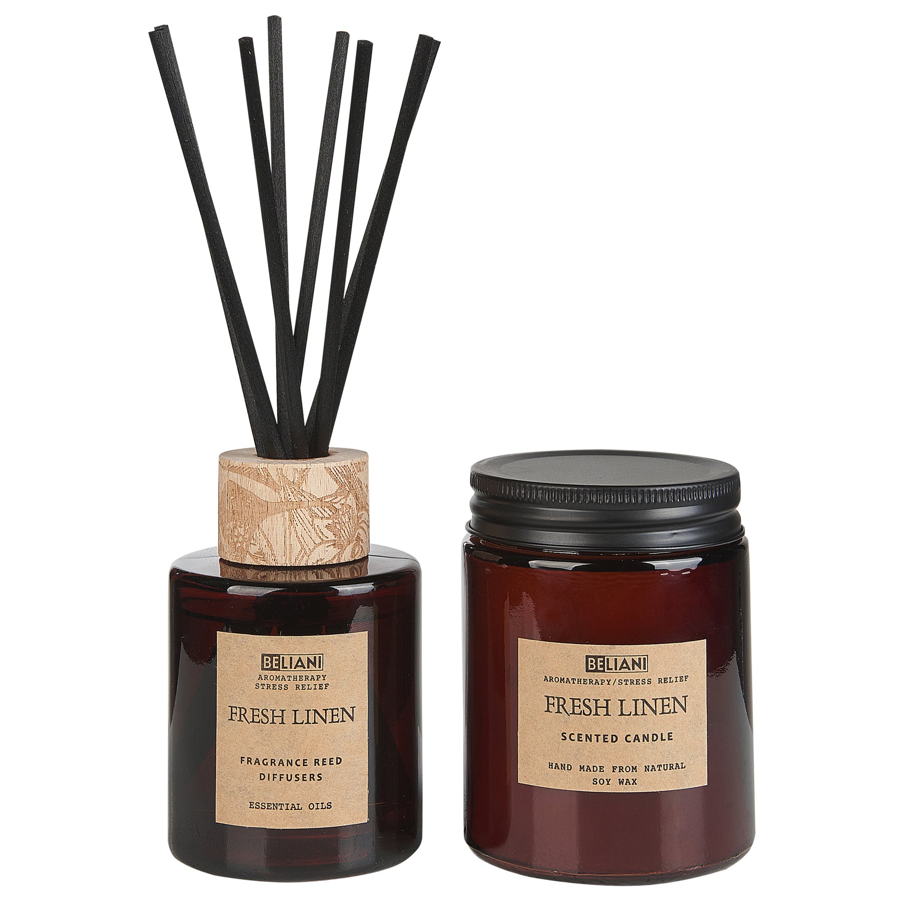 Beliani-DARK ELEGANCE-Geurkaars met geurstokjes-Bruin-Linnen-Soja wax