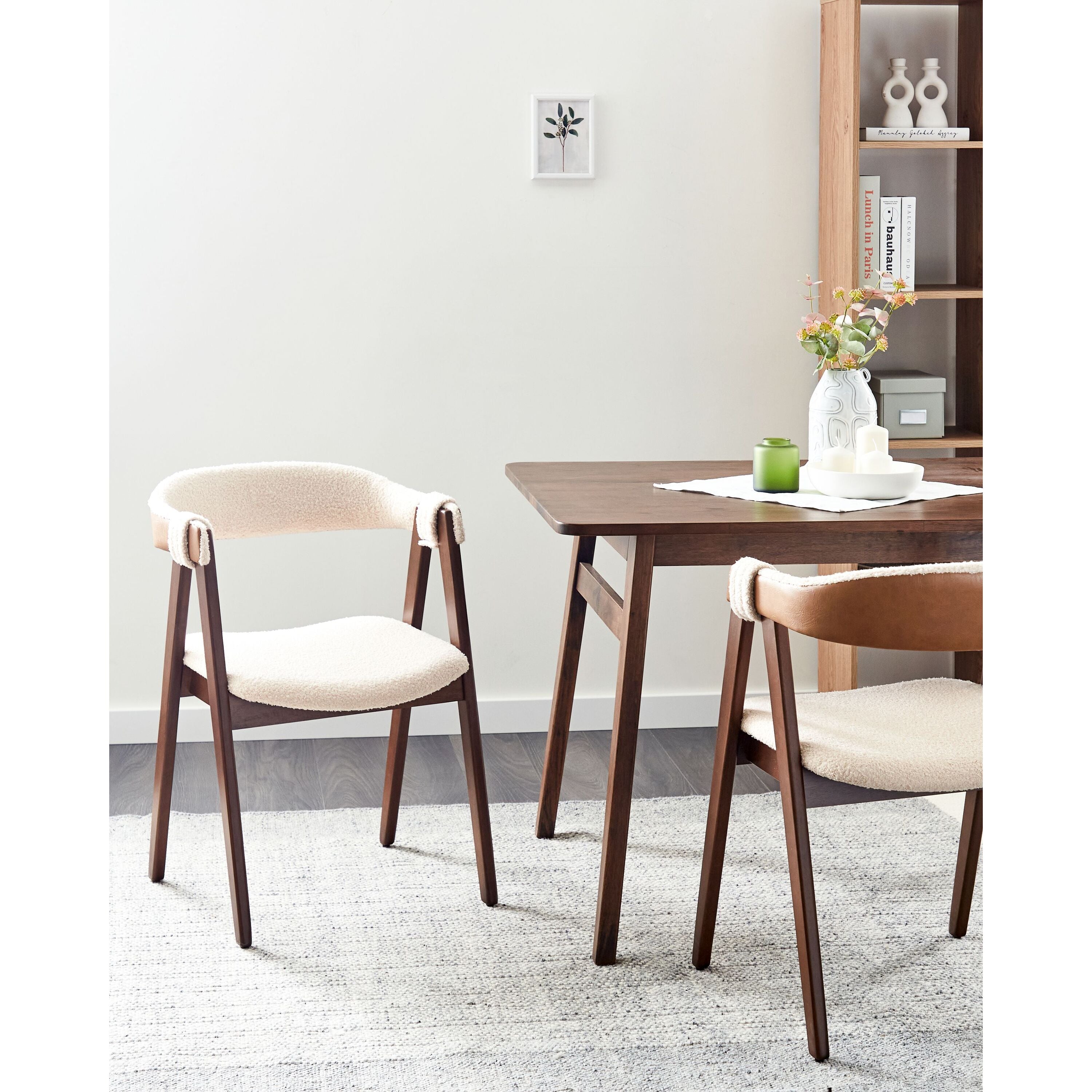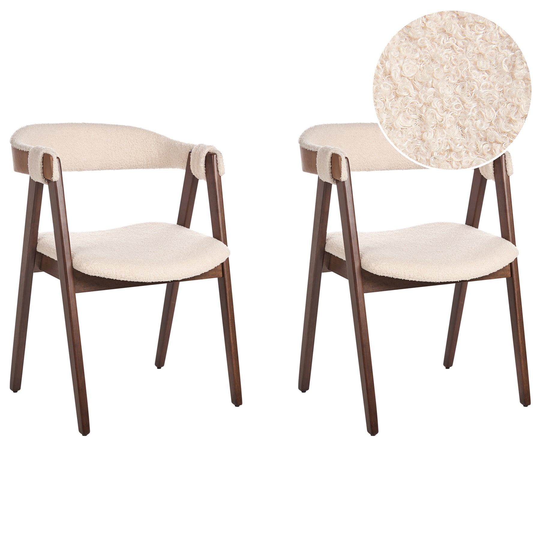 Beliani-DAY-Eetkamerstoel set van 2-Donkerhout|Lichtbeige-Bouclé