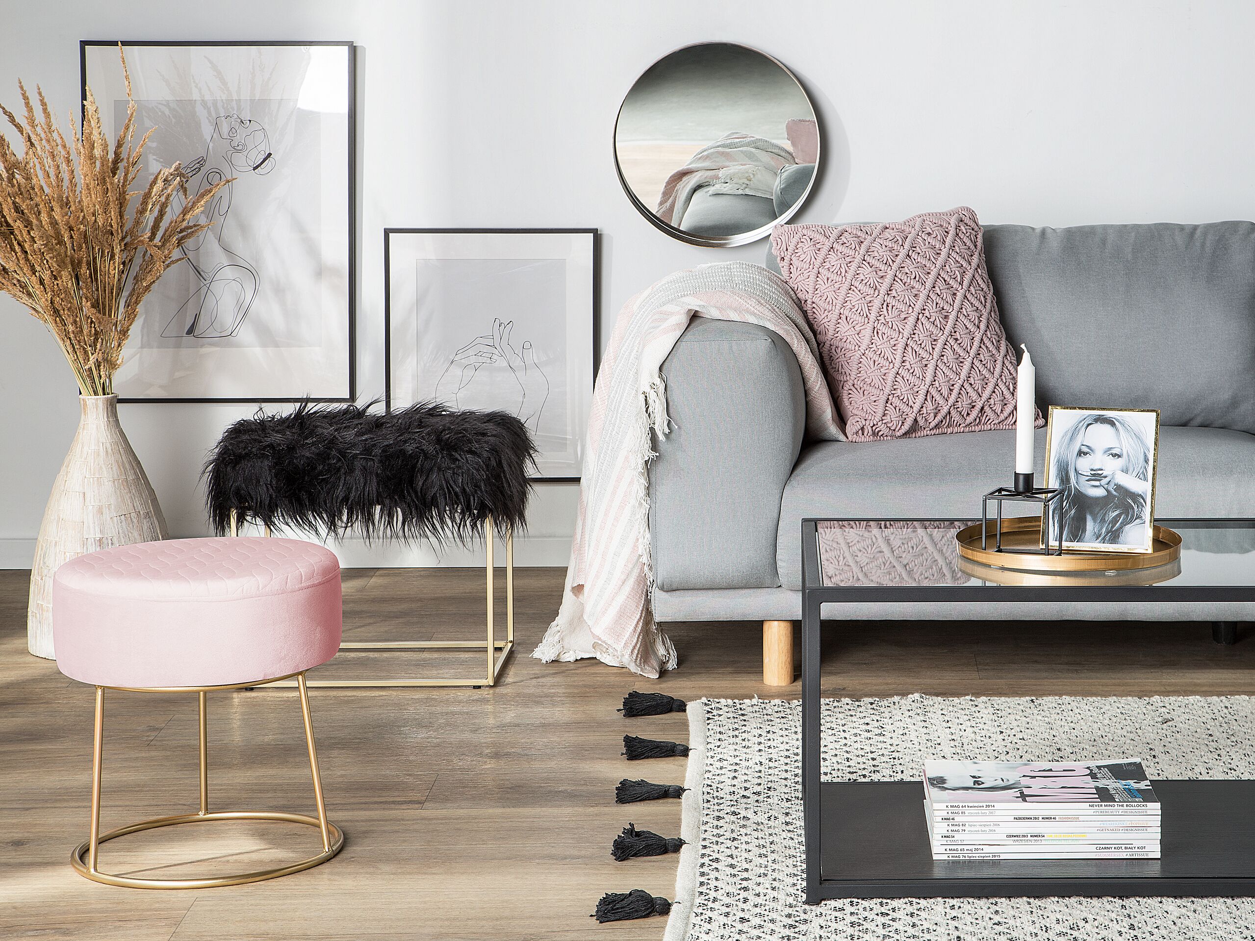 Beliani - DELCO - Hocker - Roze - Fluweel