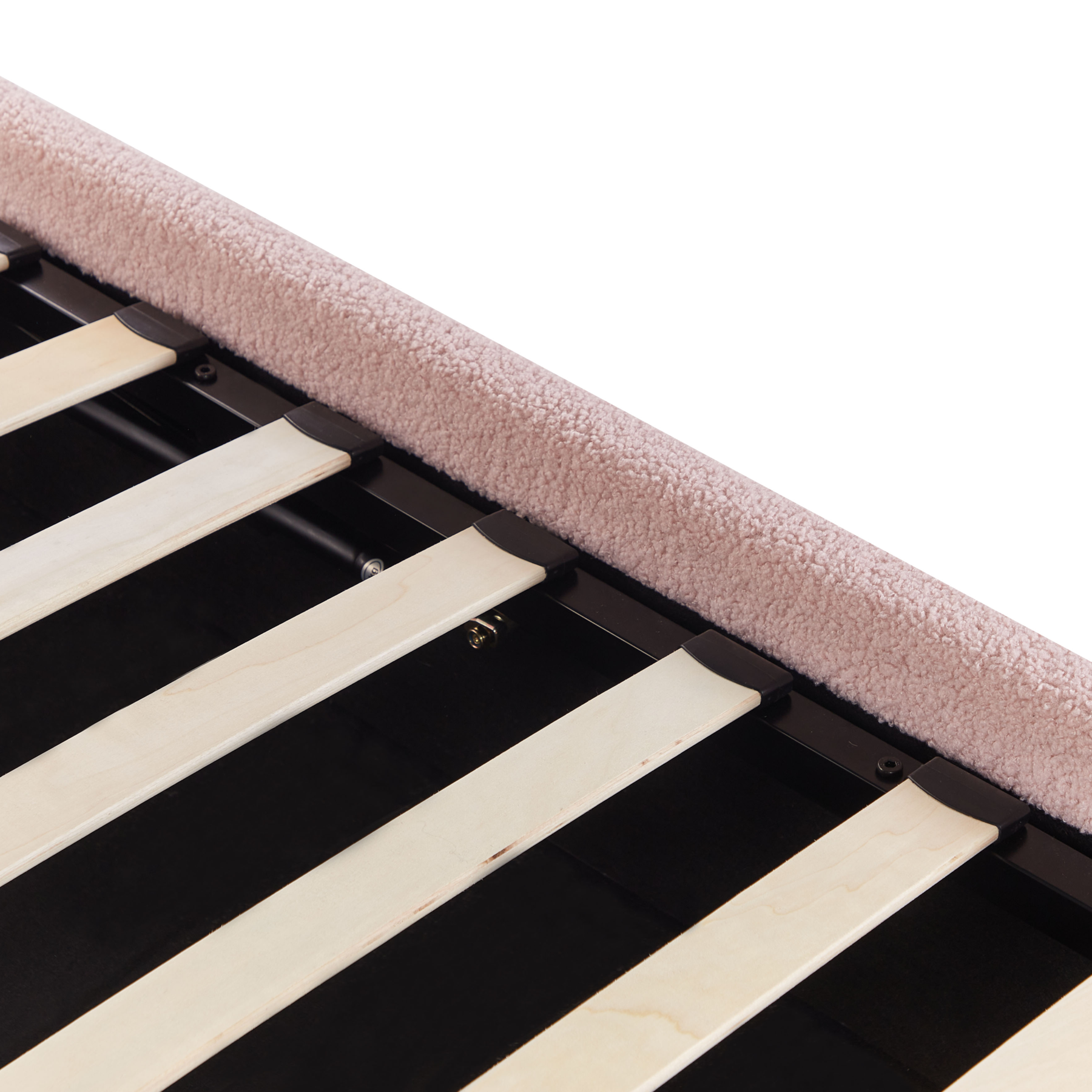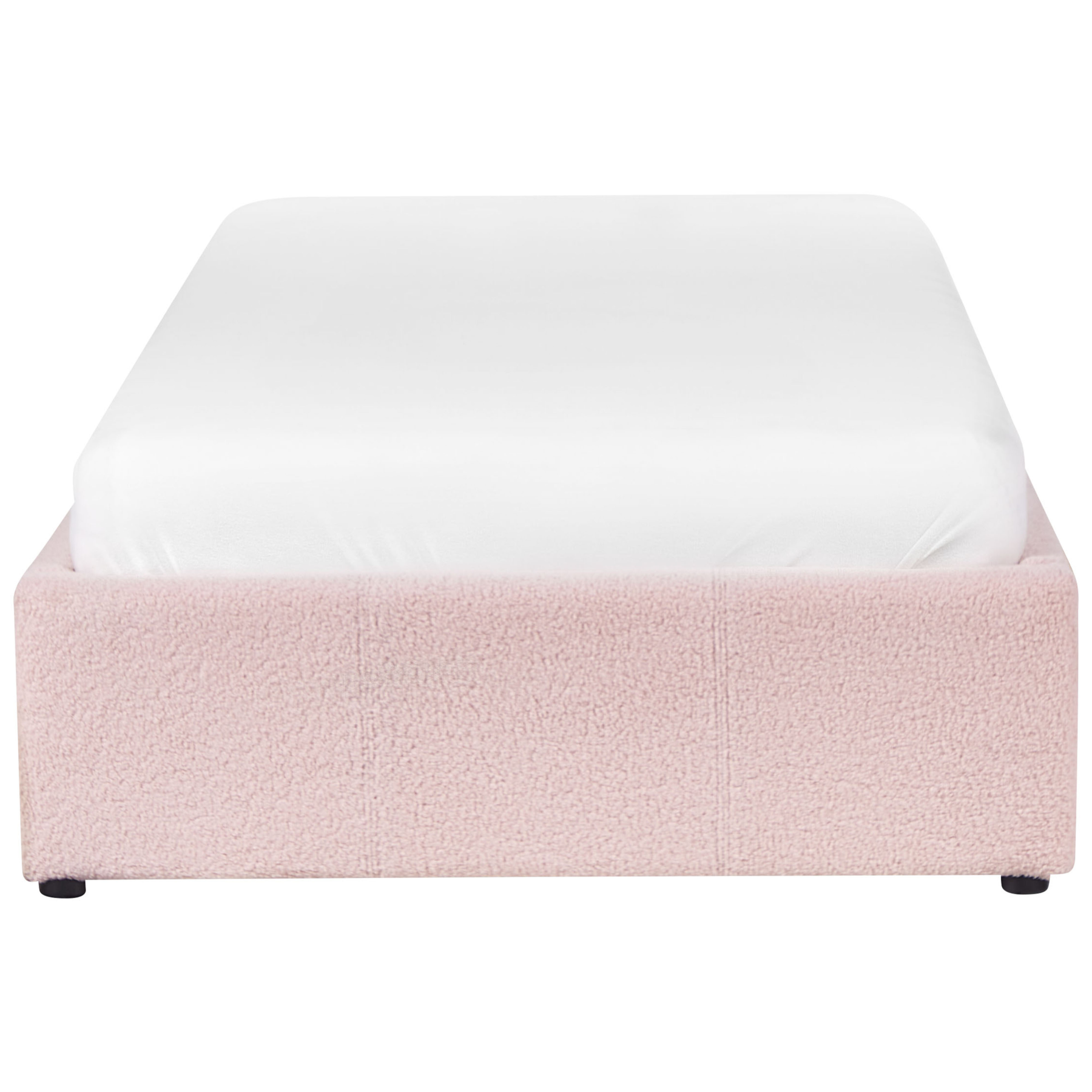 Beliani - DINAN - Eenpersoonsbed - Pastelroze - 90 x 200 cm - Bouclé