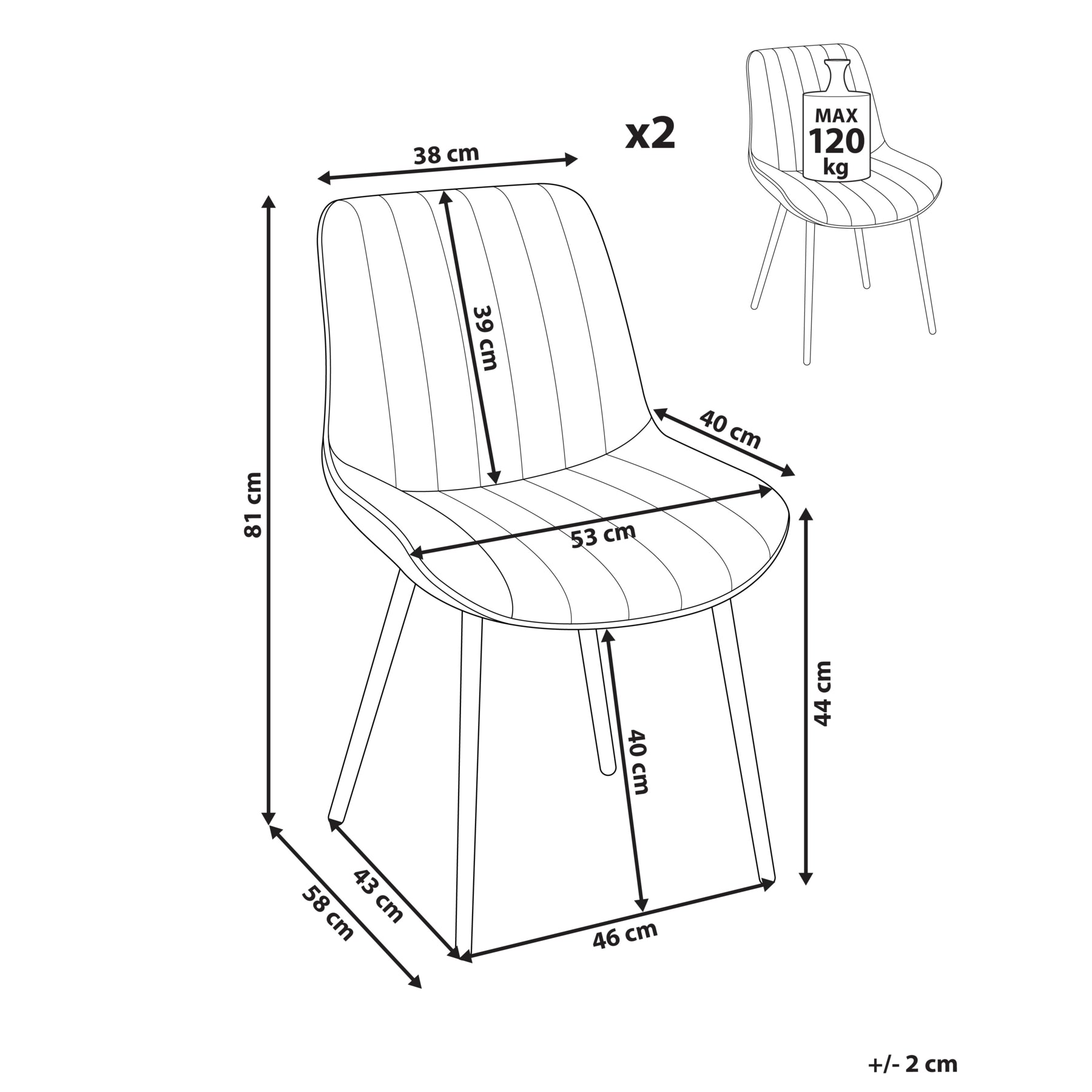 Beliani - DUBROVNIK - Eetkamerstoel set van 2 - Lichtbeige - Fluweel