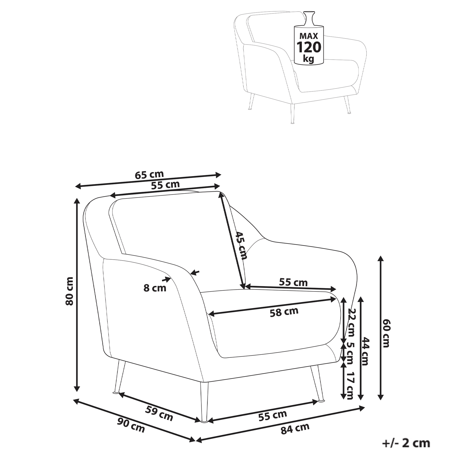 | Hoogte armleuning | 60 cm |