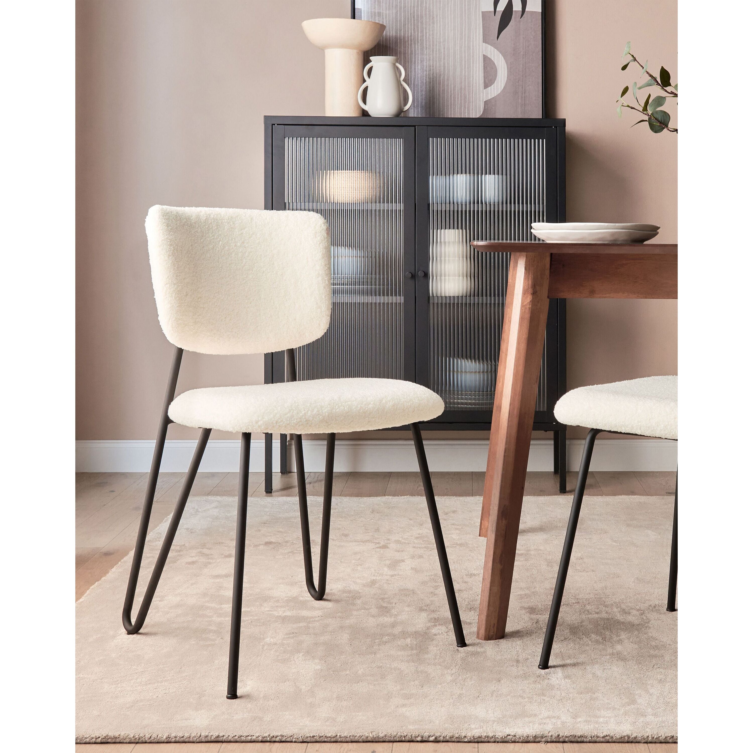 Beliani - ELKO - Eetkamerstoel set van 2 - Gebroken wit - Bouclé