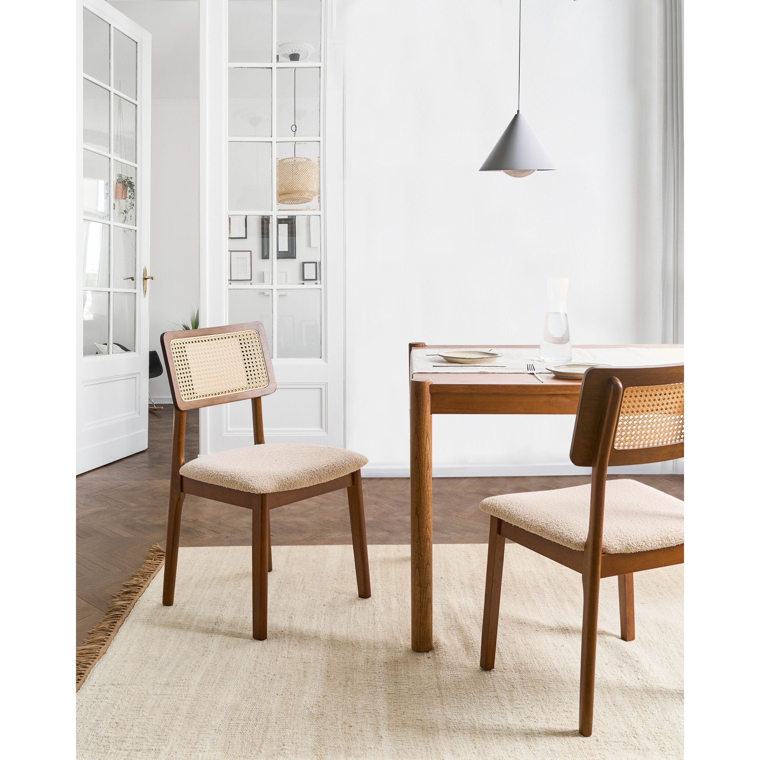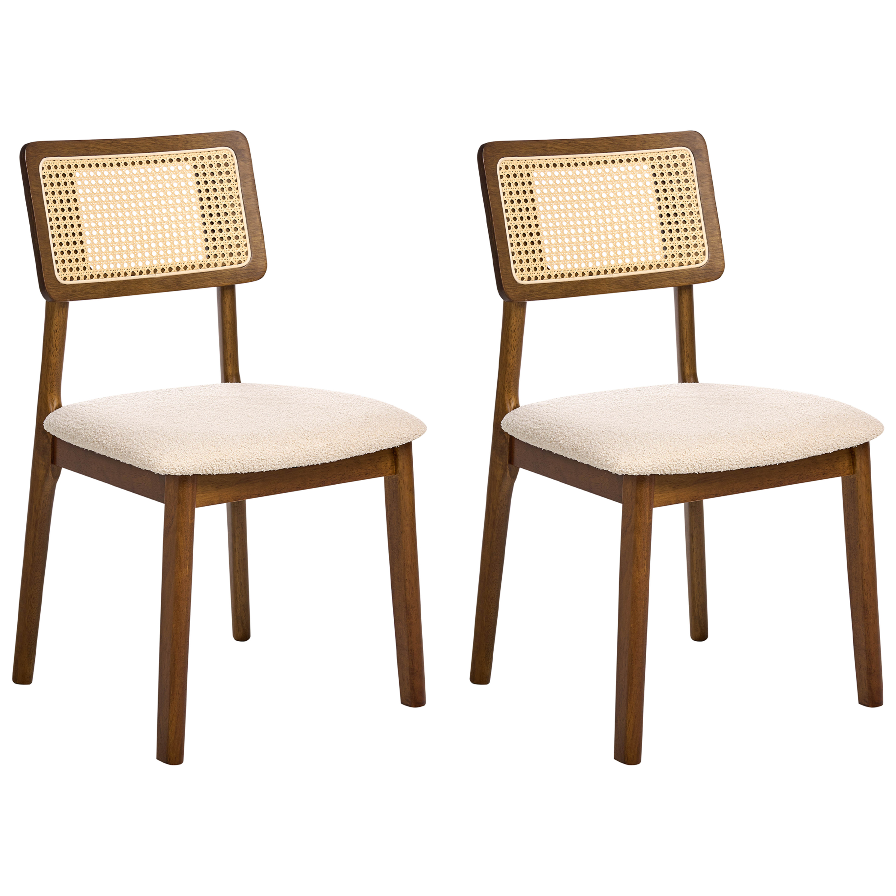 Beliani - EMBAR - Eetkamerstoel set van 2 - Bruin - Rubberhout|Bouclé