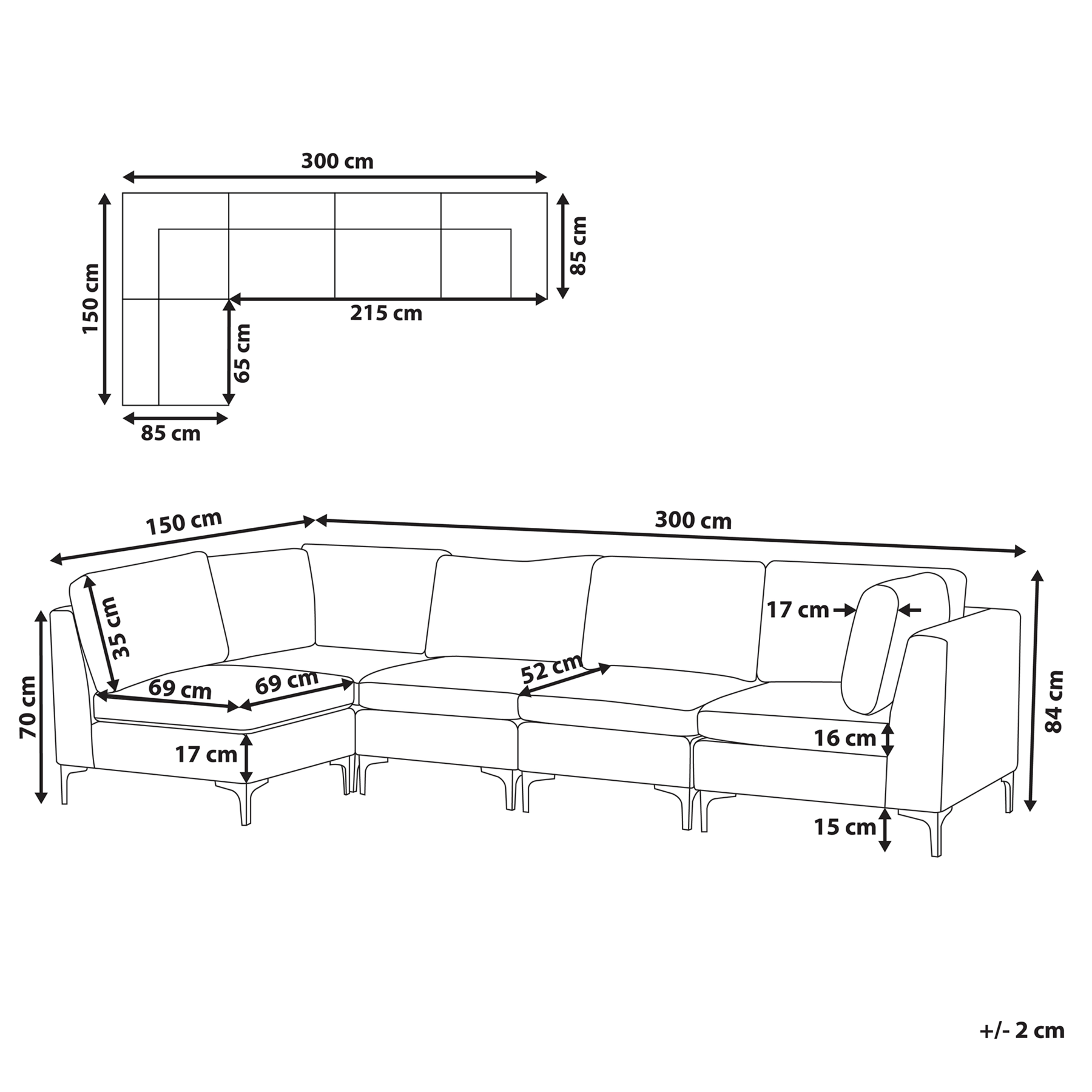 Beliani-EVJA-Hoekbank 5-zits-Marineblauw-Rechterzijde-Fluweel