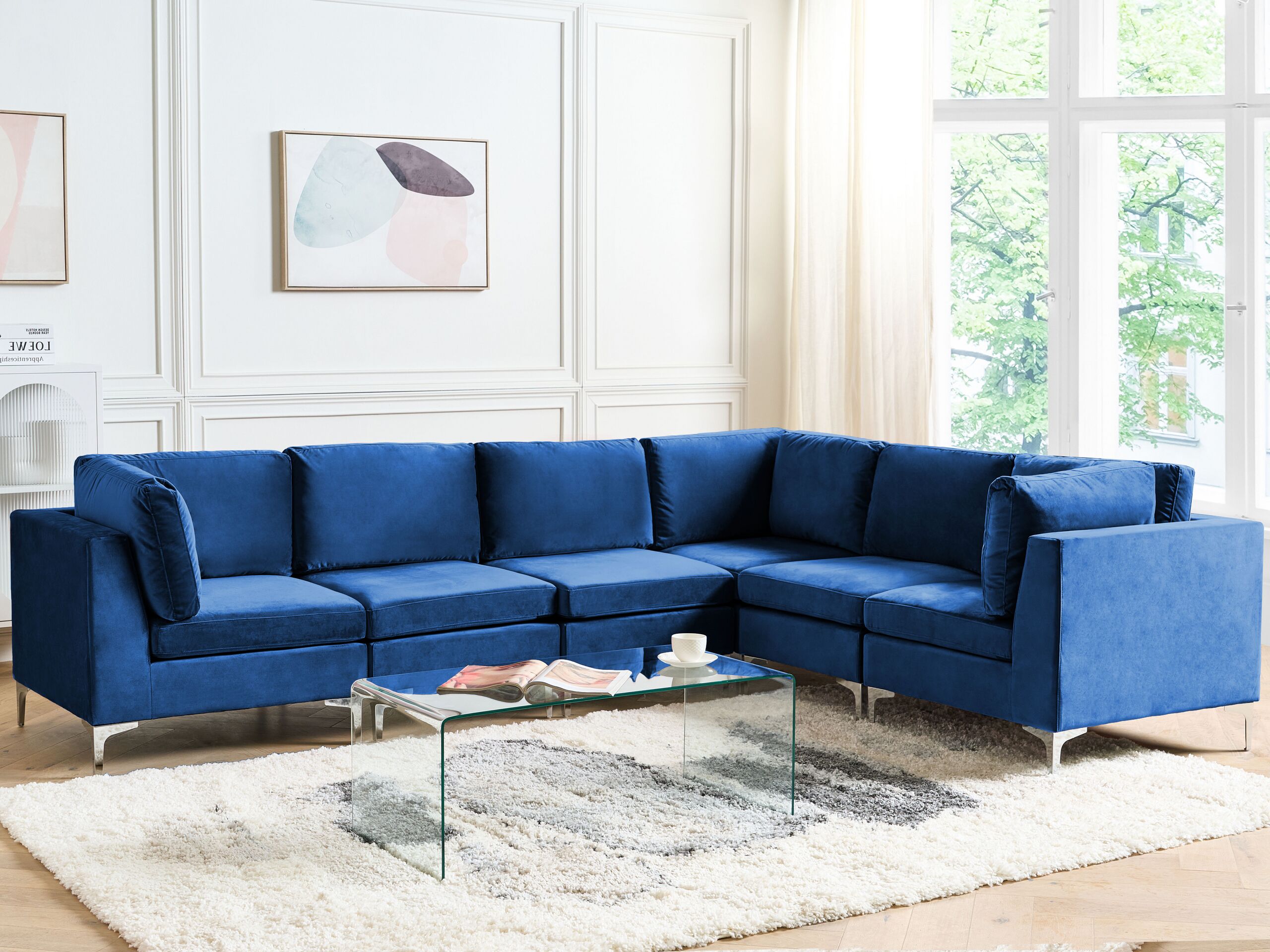 Beliani - EVJA - Hoekbank - Marineblauw - Linkerzijde - Fluweel