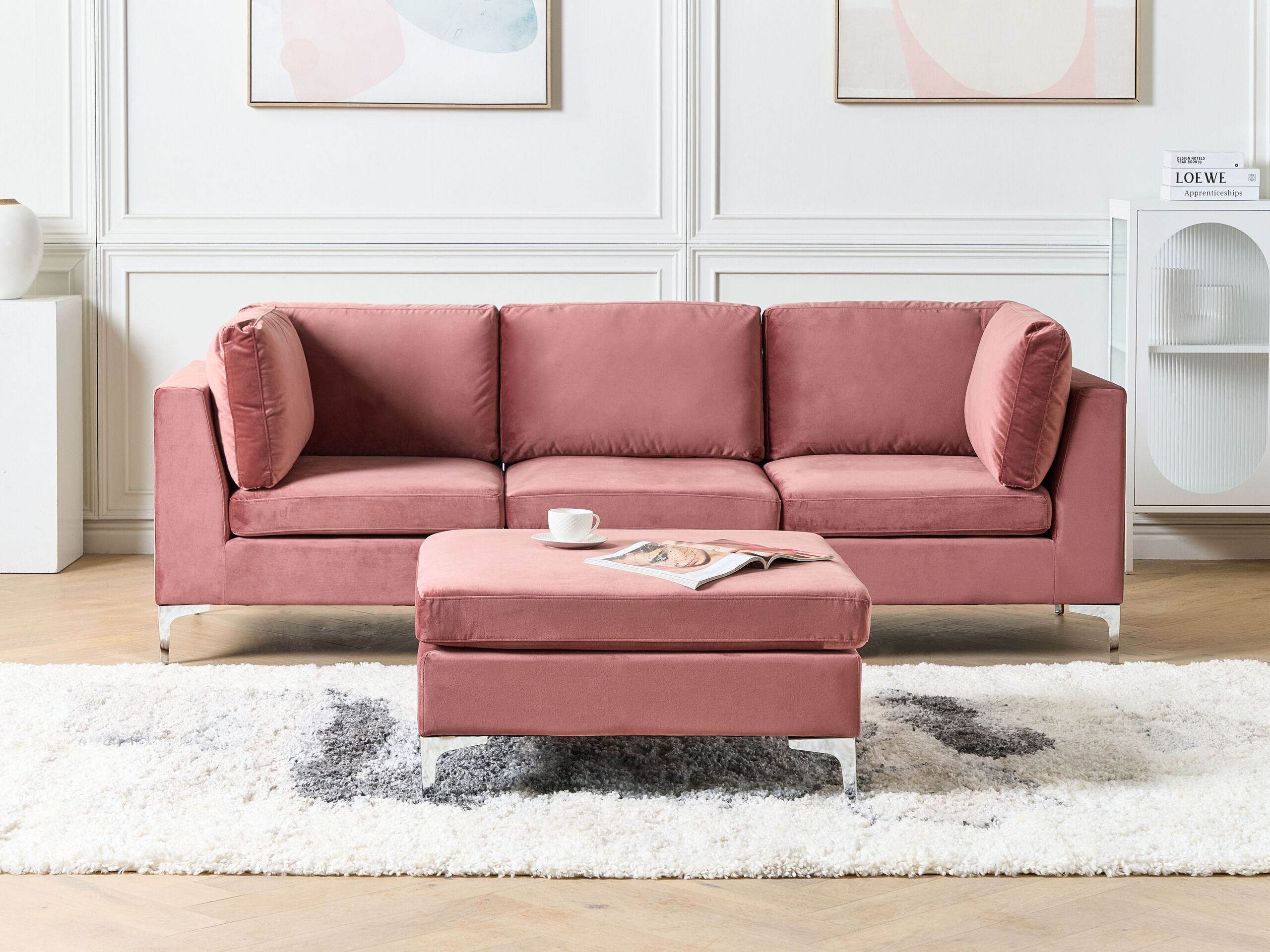 Beliani - EVJA - Hoekbank met ottmaan - Roze - Fluweel