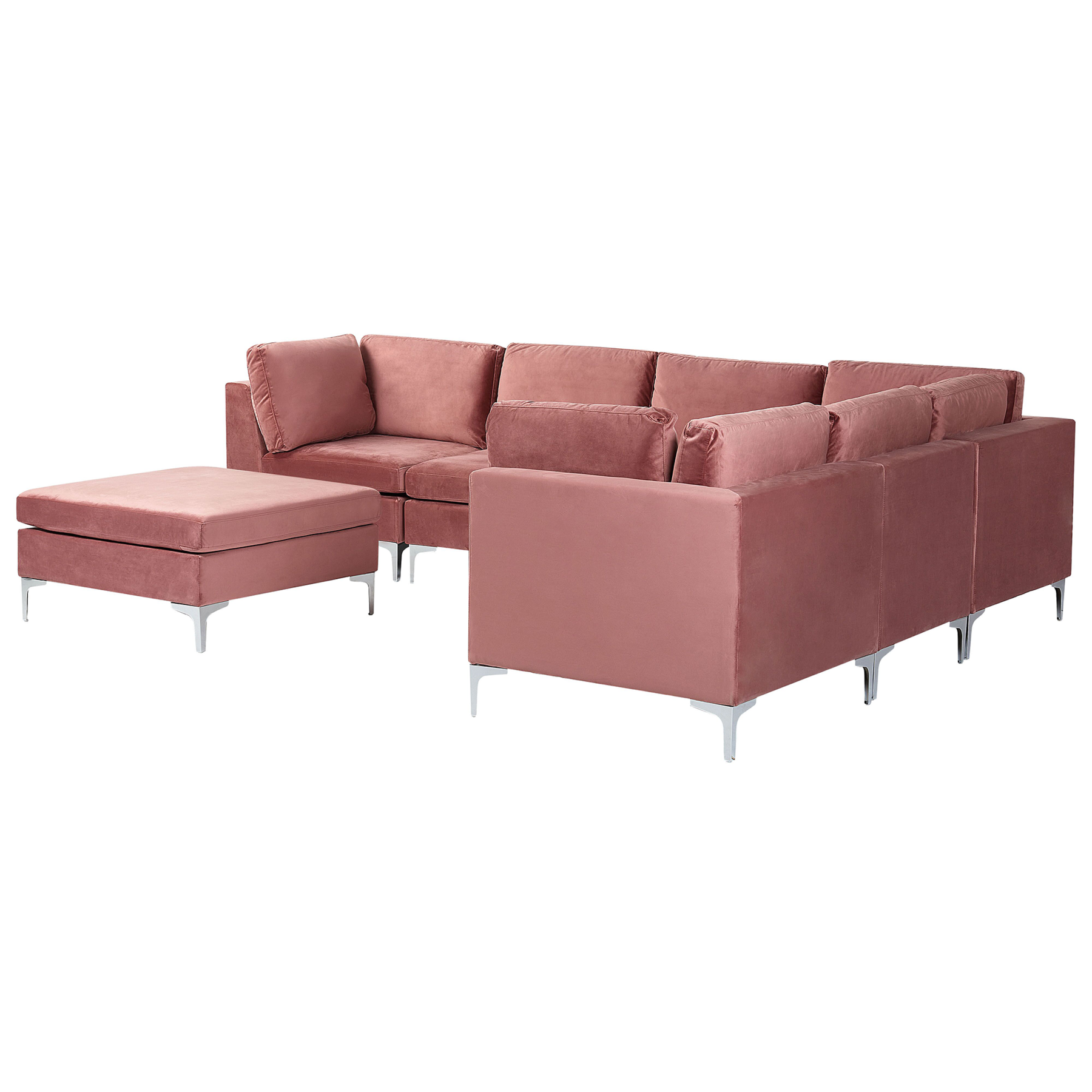 Beliani - EVJA - Hoekbank met ottmaan - Roze - Linkerzijde - Fluweel