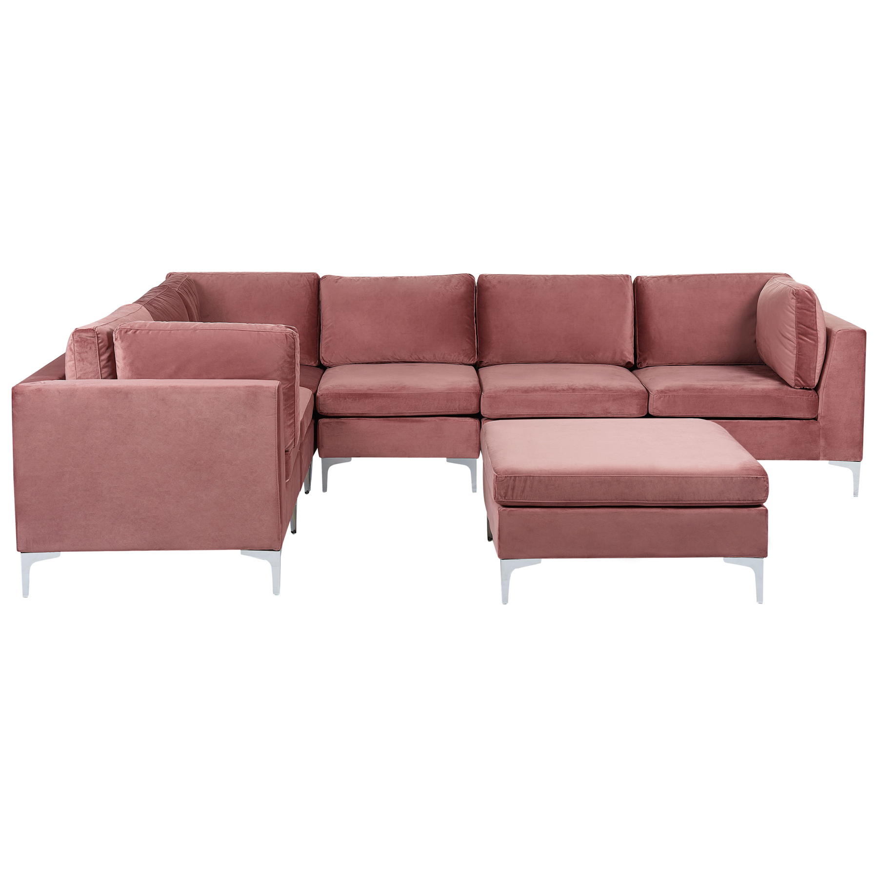 Beliani - EVJA - Hoekbank met ottmaan - Roze - Rechterzijde - Fluweel