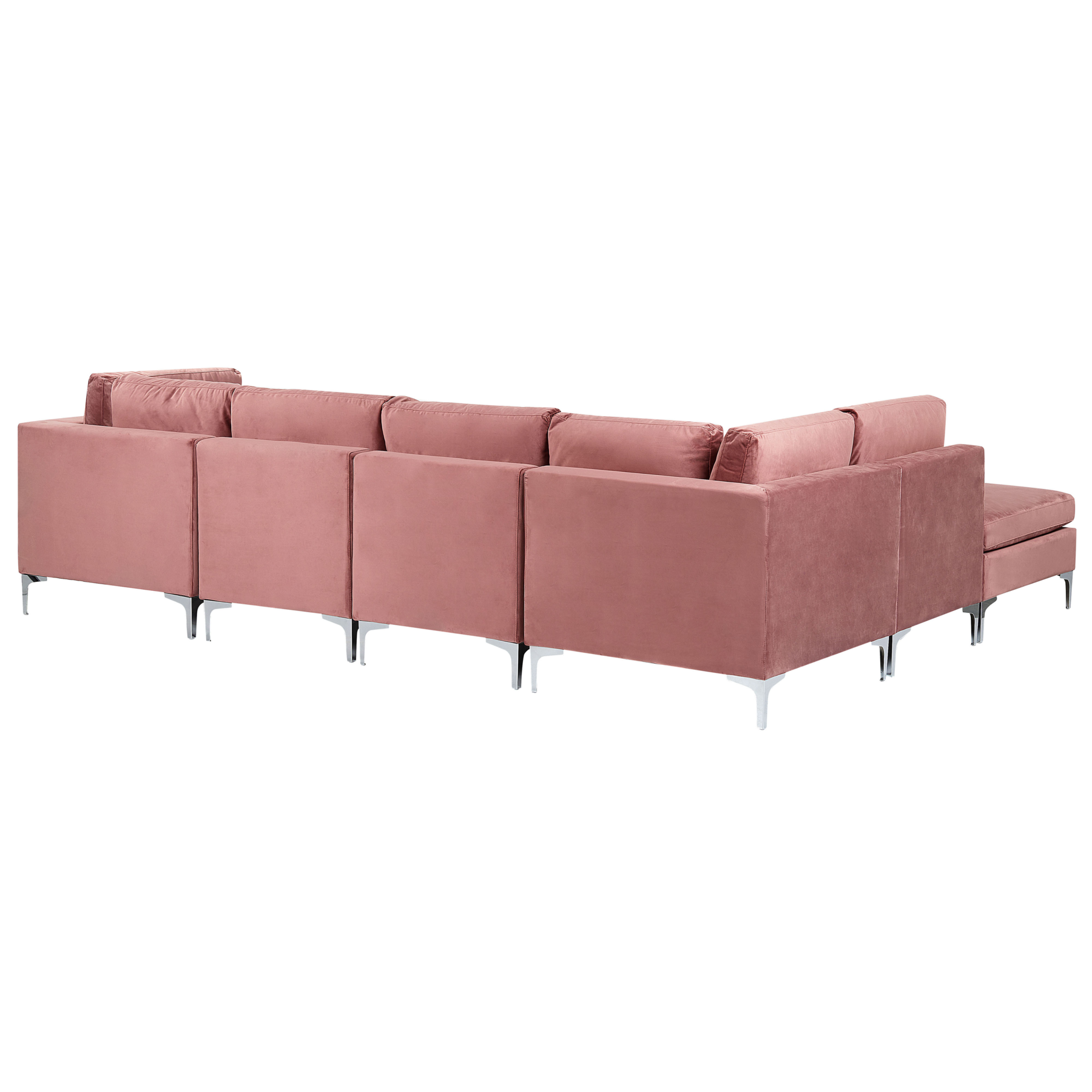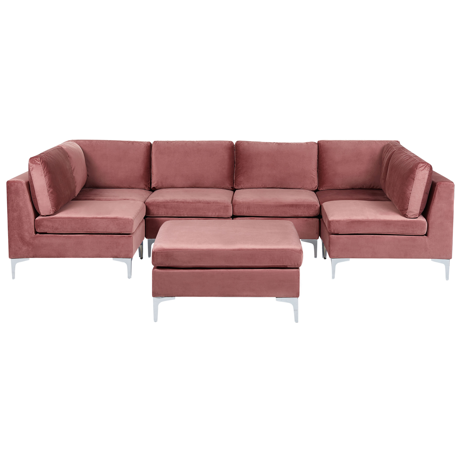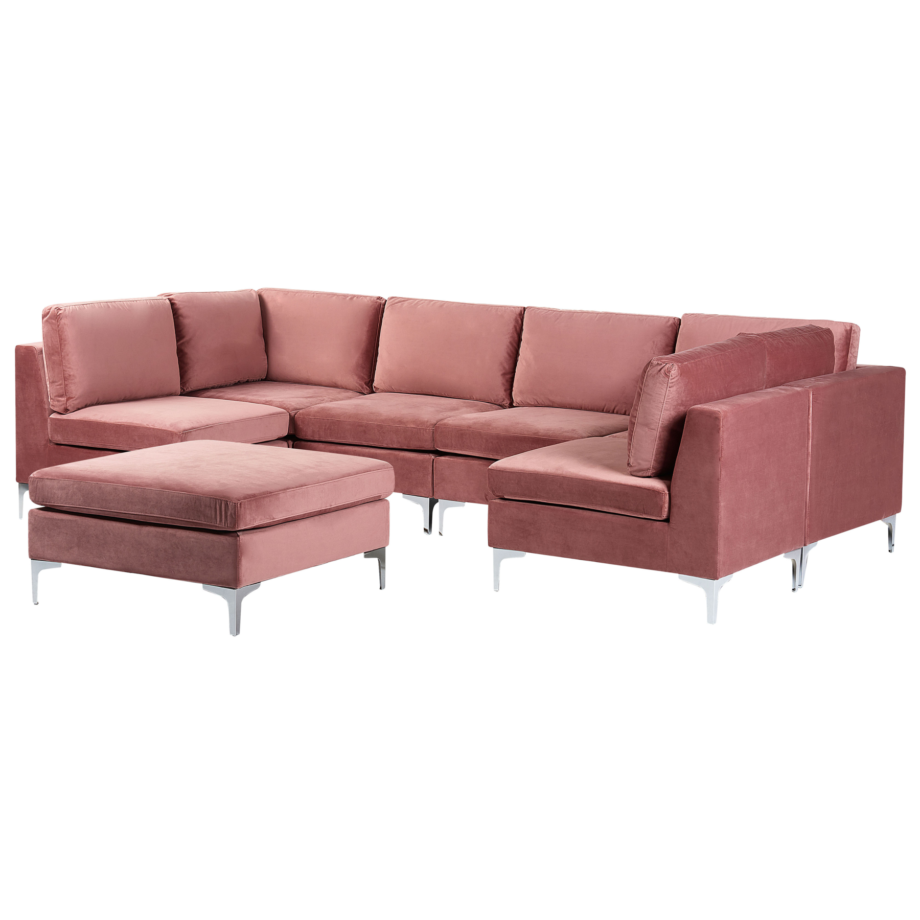 Beliani - EVJA - Hoekbank met ottomaan 6-zits - Roze - Fluweel