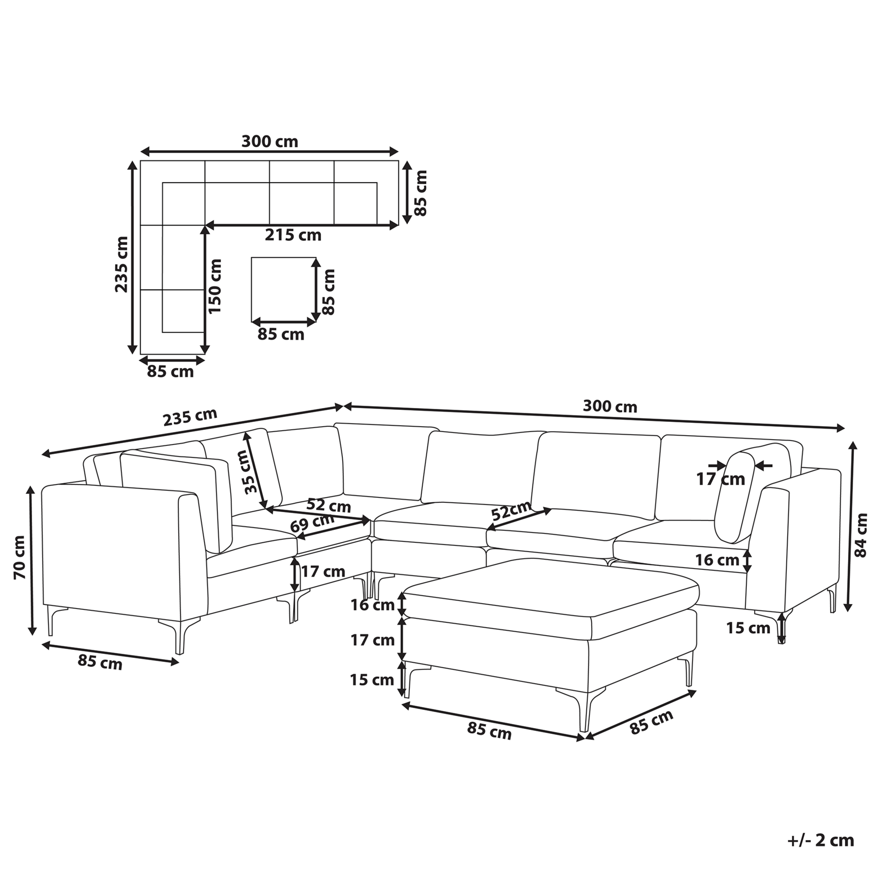 Beliani-EVJA-Hoekbank met ottomaan-Marineblauw-Rechterzijde-Fluweel