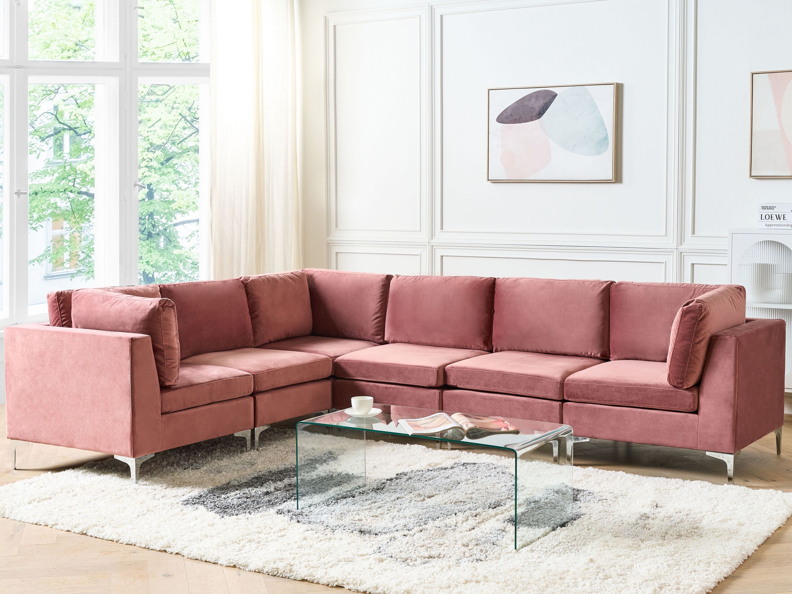 Beliani - EVJA - Hoekbank - Roze - Rechterzijde - Fluweel
