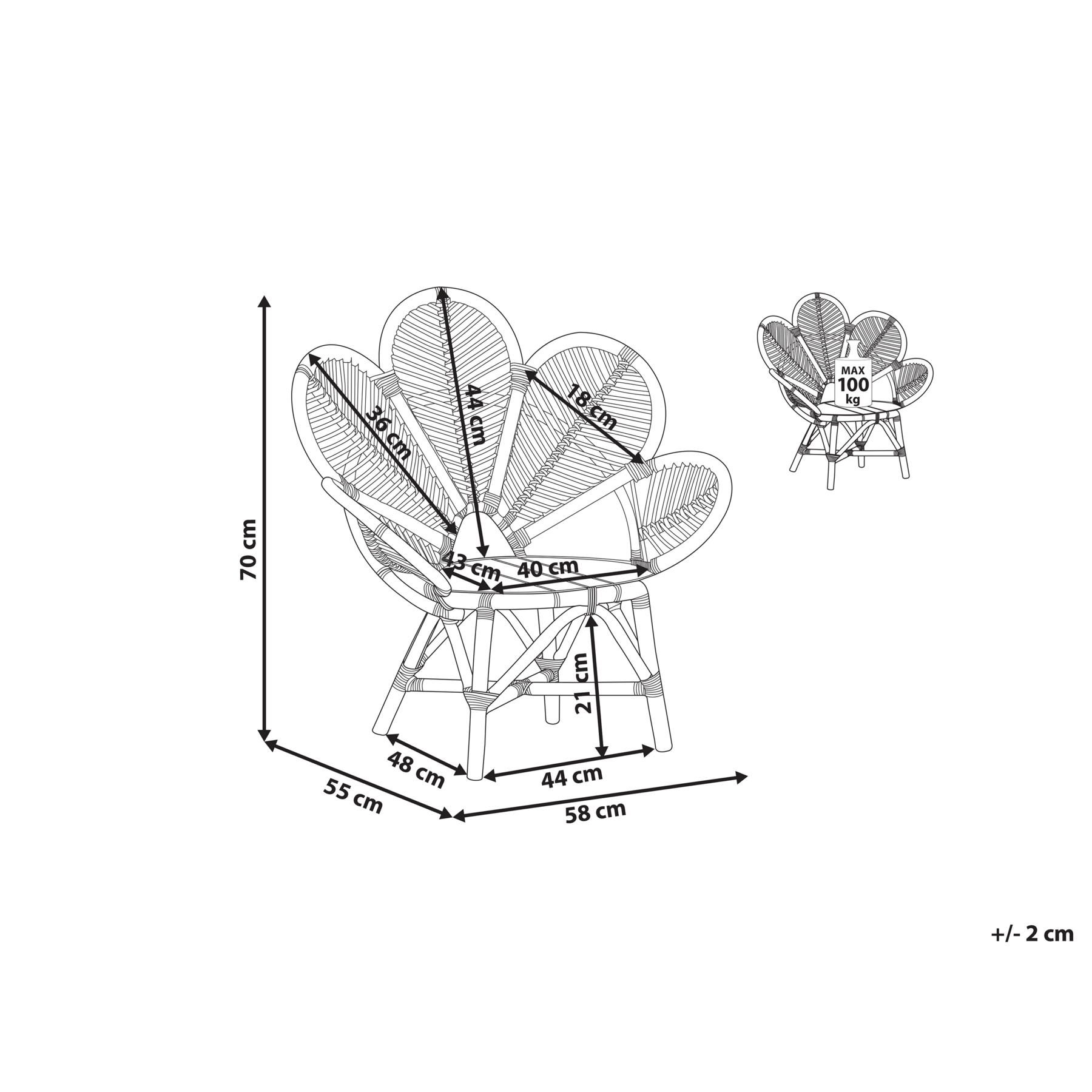 | Materiaal zitting | Rotan |