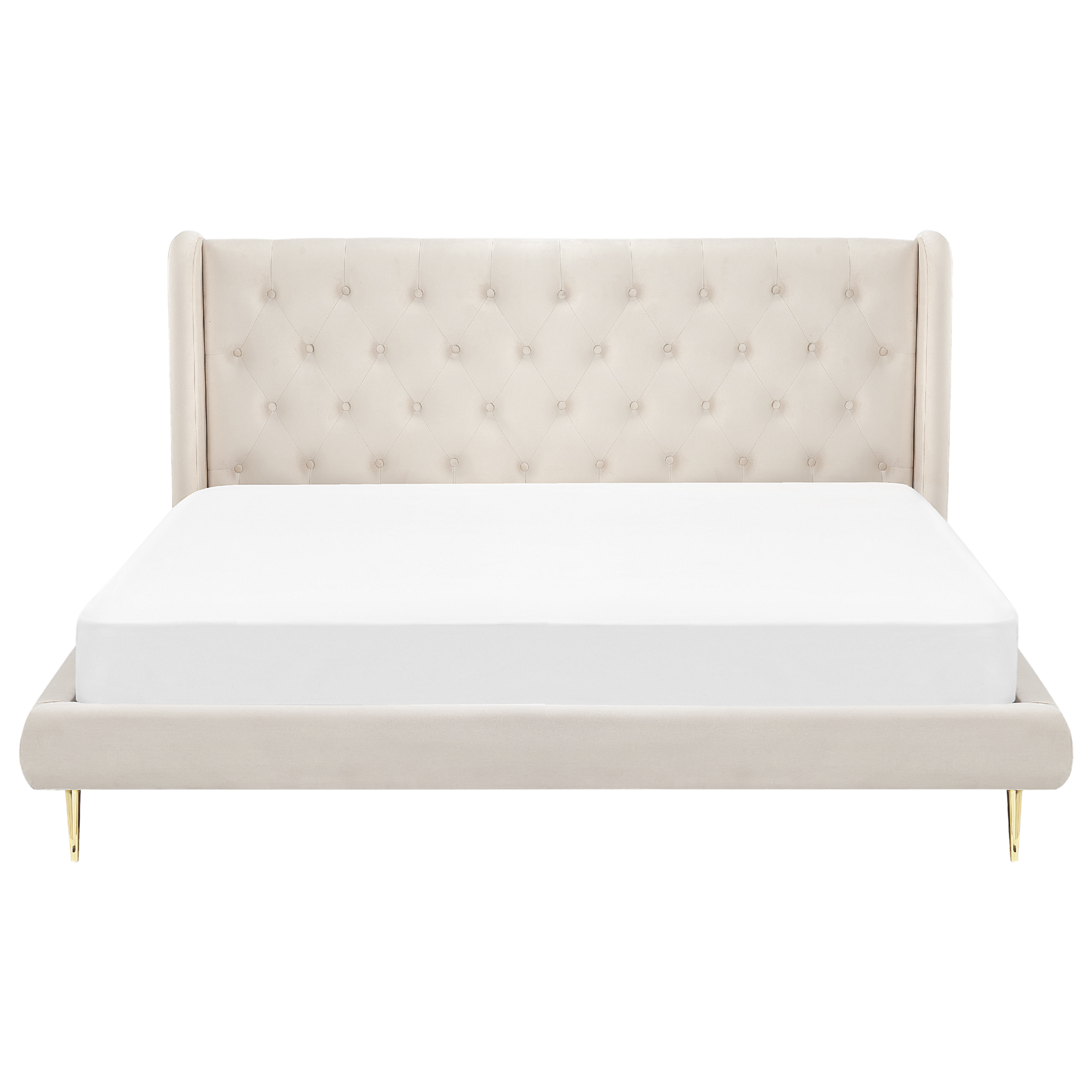 Beliani - FORBACH - Tweepersoonsbed - Beige - 180 x 200 cm - Fluweel