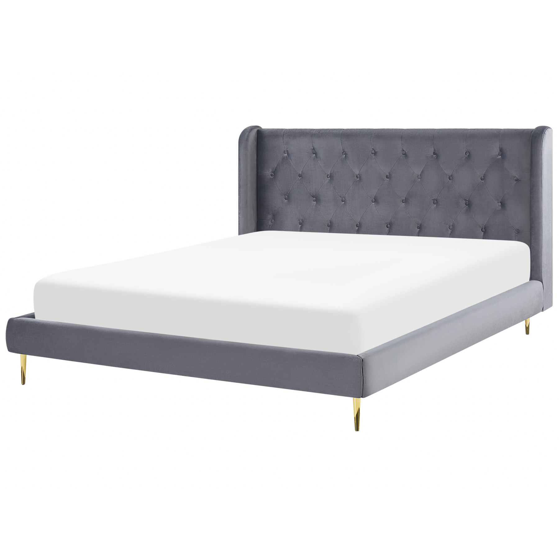 Beliani - FORBACH - Tweepersoonsbed - Grijs - 180 x 200 cm - Fluweel