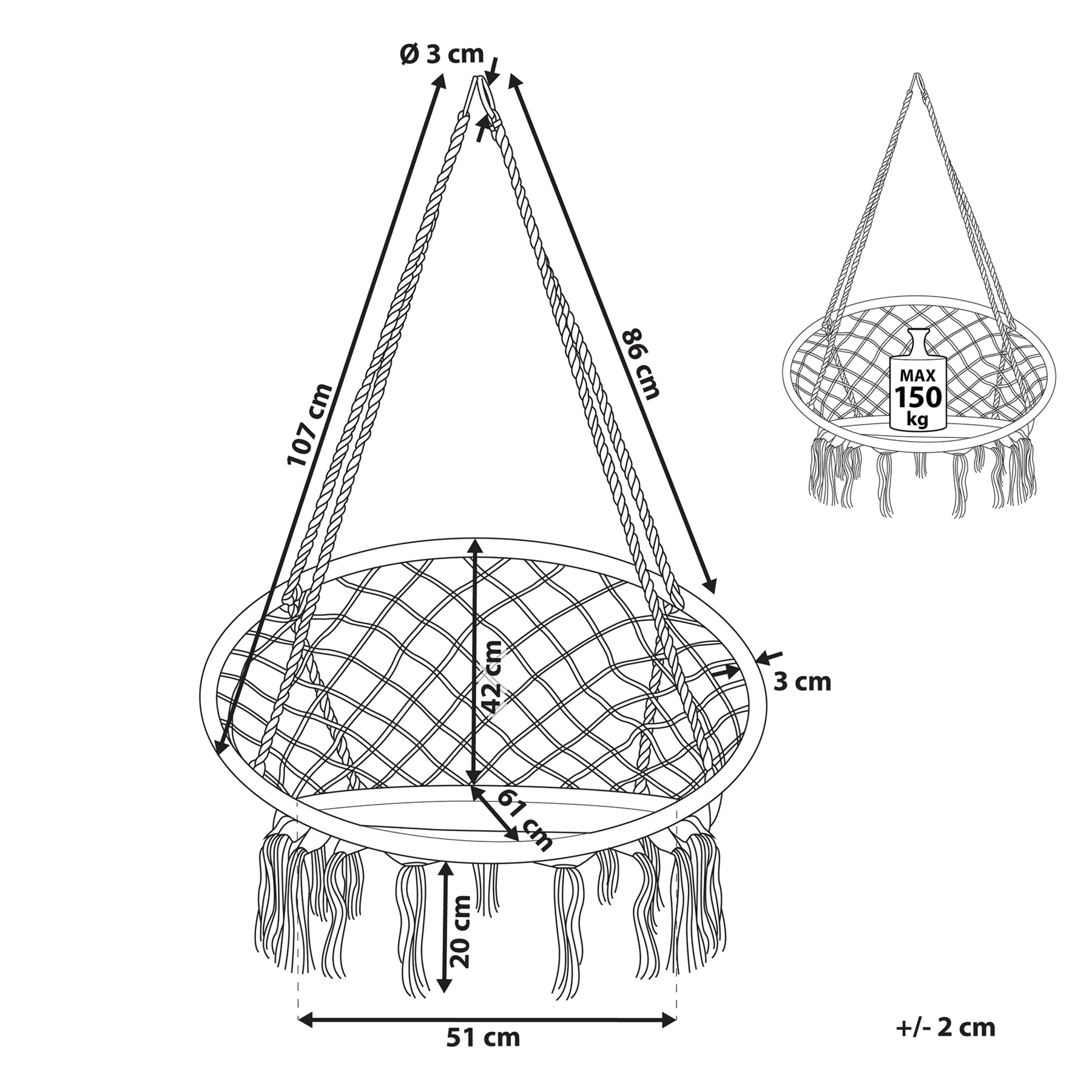| Maximale draagkracht | 150 kg |