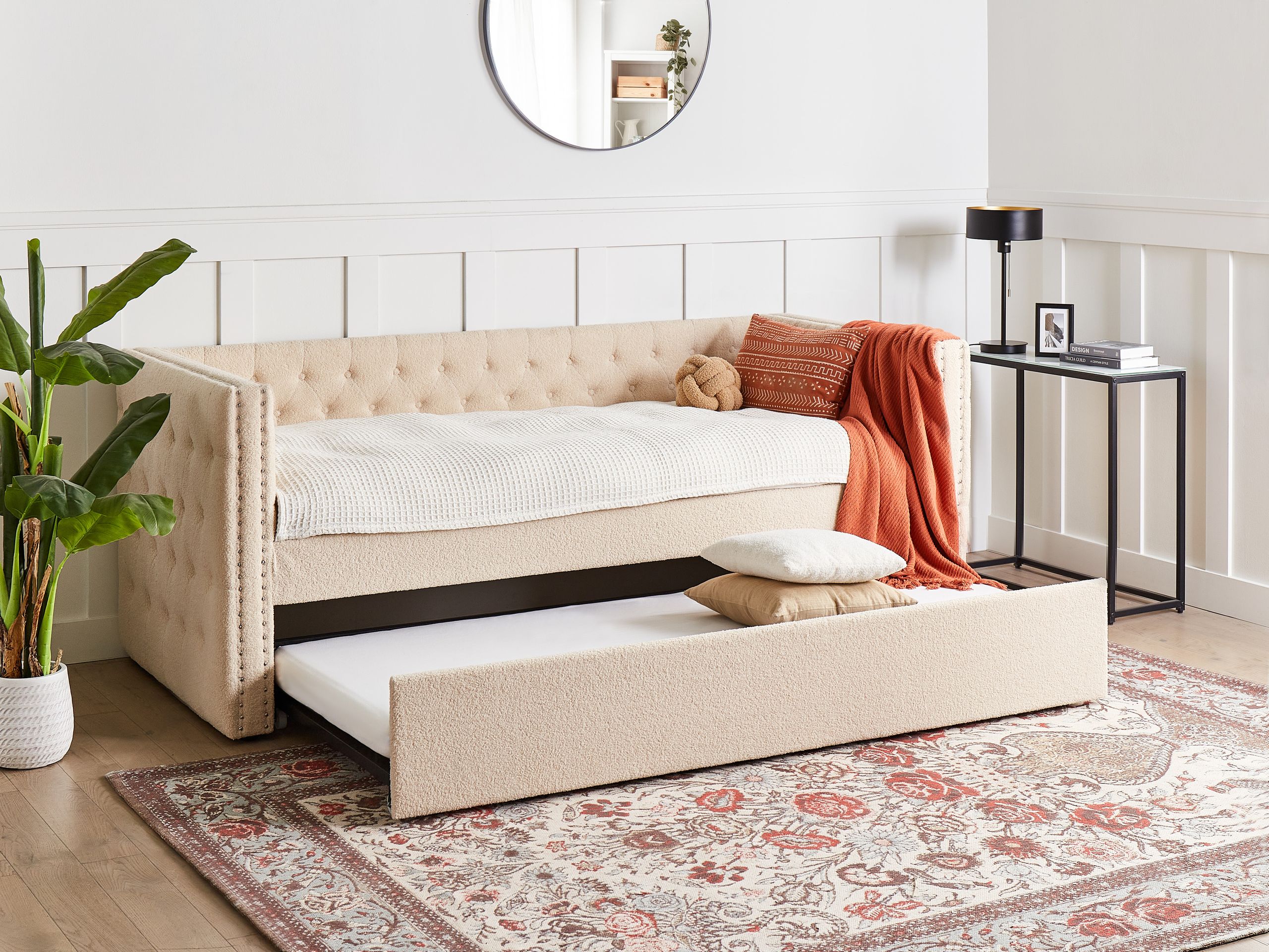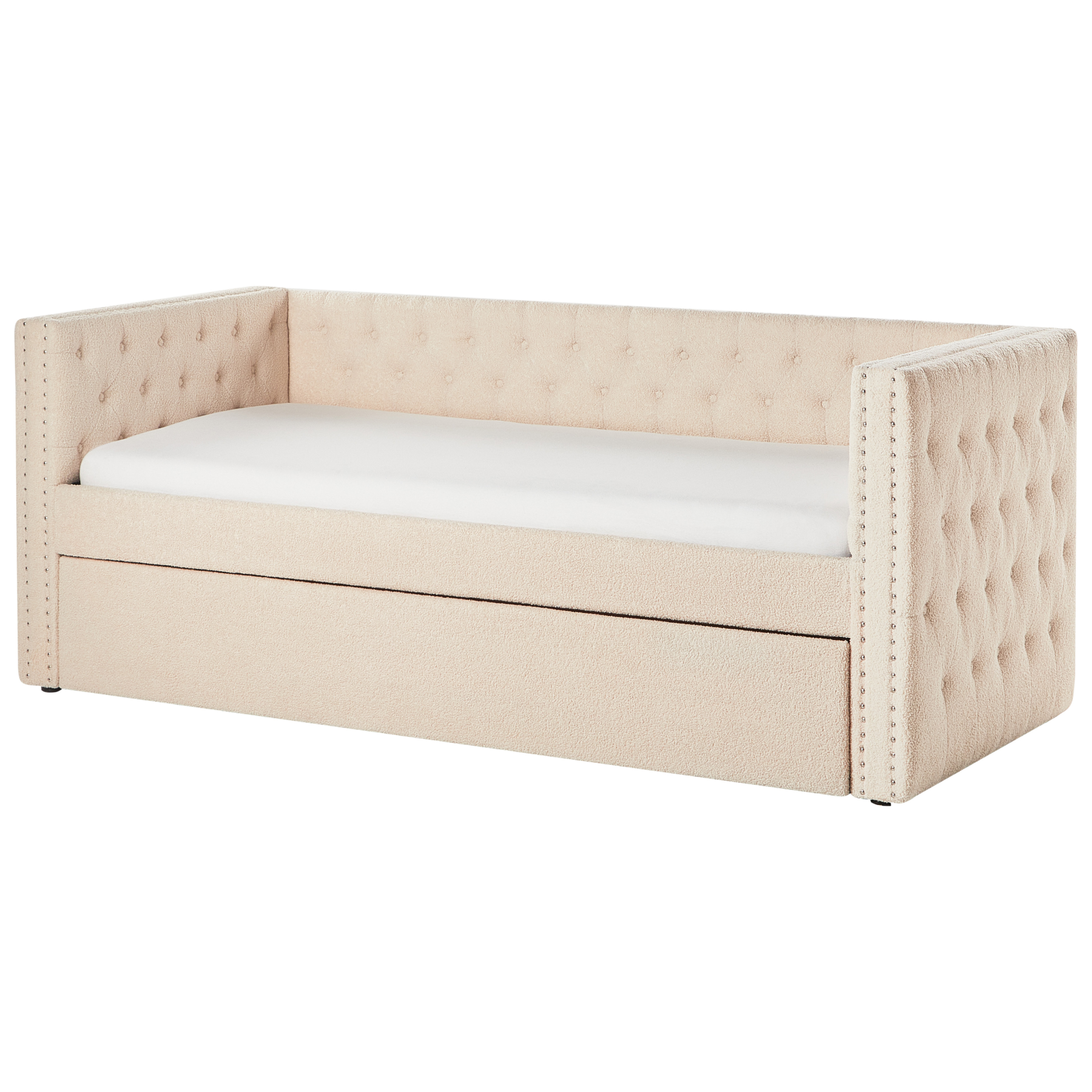 Beliani - GASSIN - Onderschuifbed - Lichtbeige - 90 x 200 cm - Bouclé