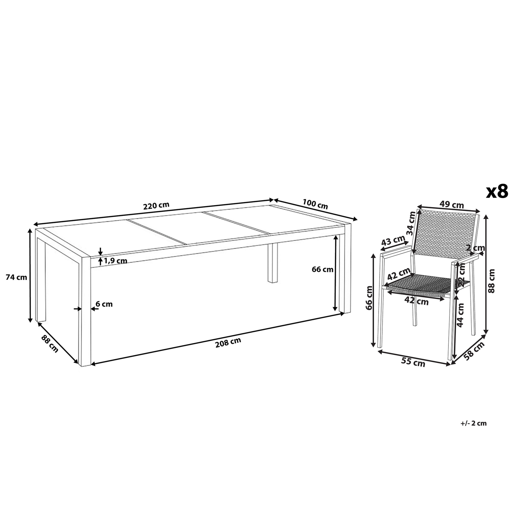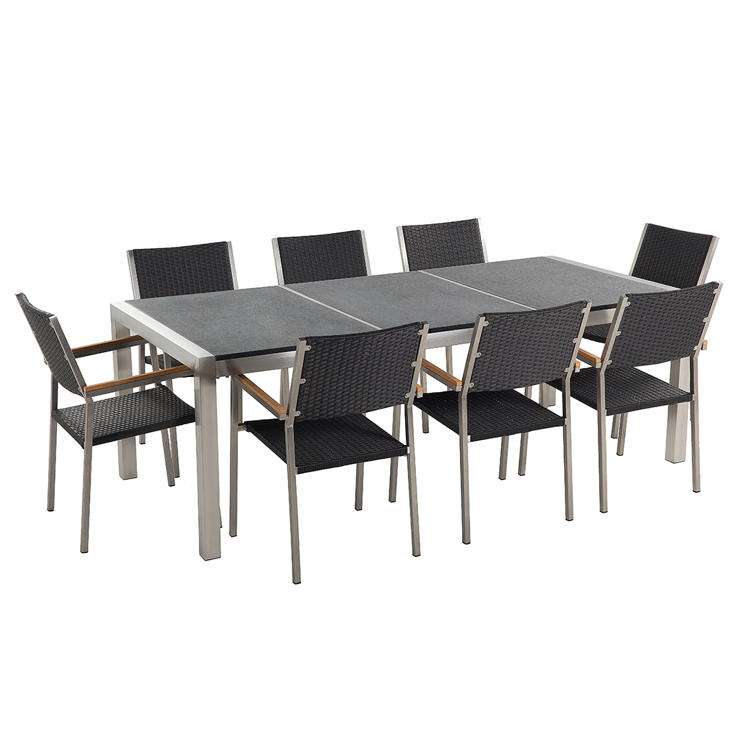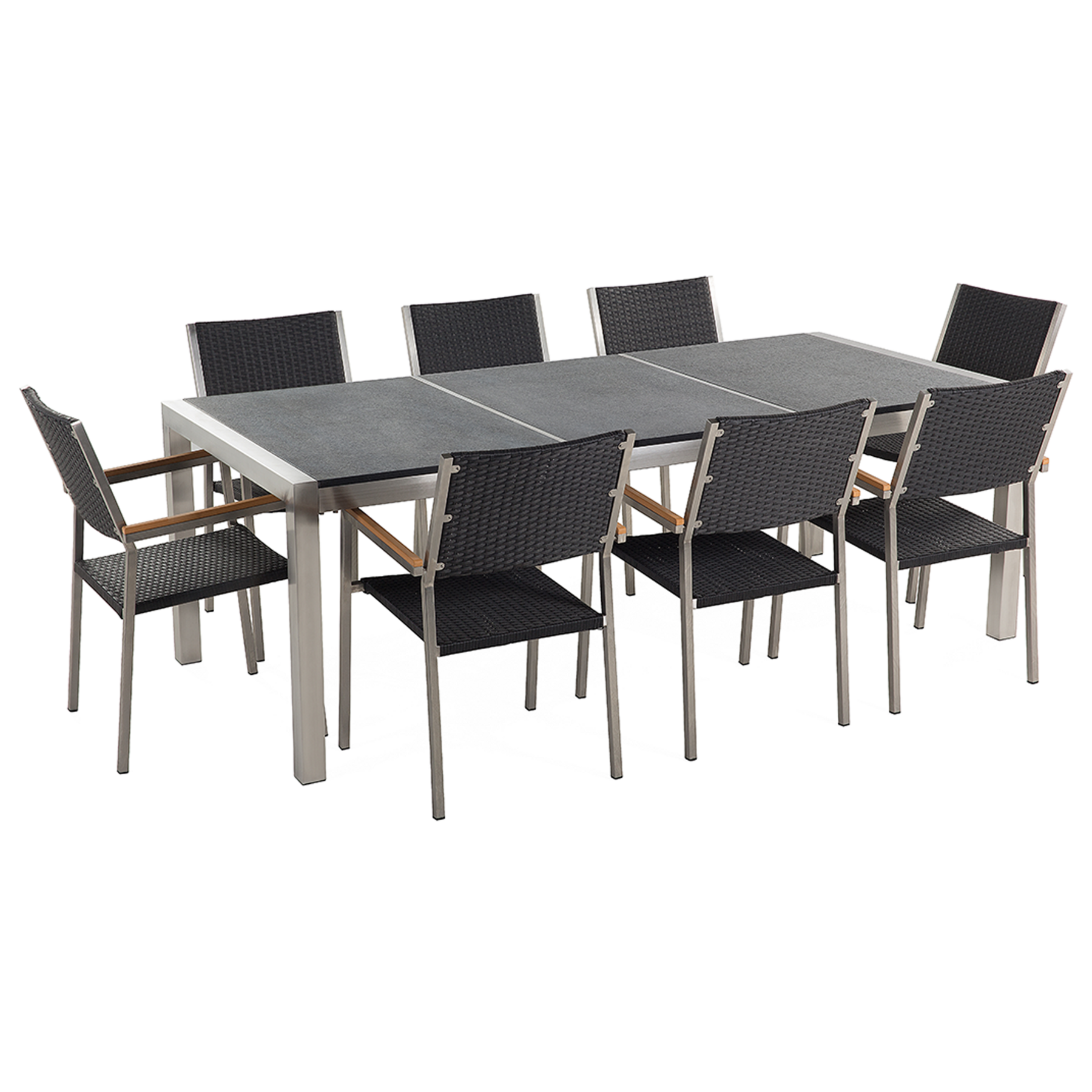 Beliani - GROSSETO - Tuinset voor 8 Rotan - Grijs|Zwart - Graniet