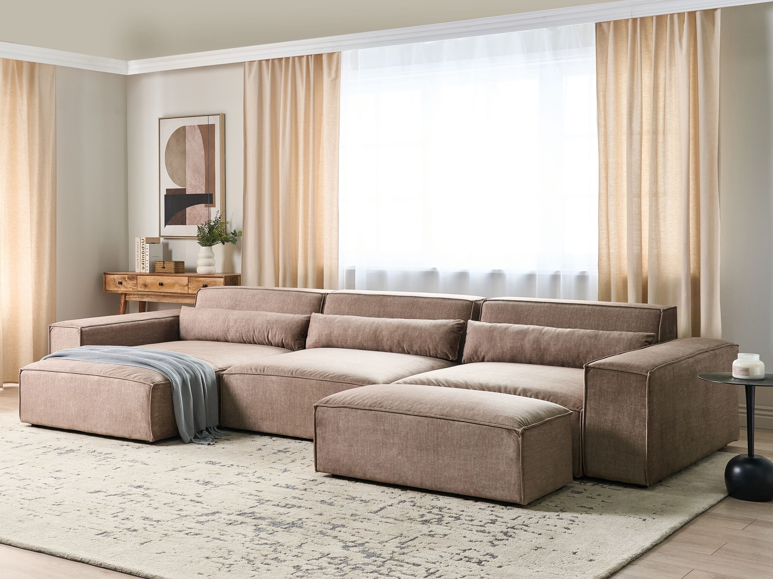 Beliani-HELLNAR-Hoekbank 3-zits ottomaan-Lichtbruin-Rechts-Polyester