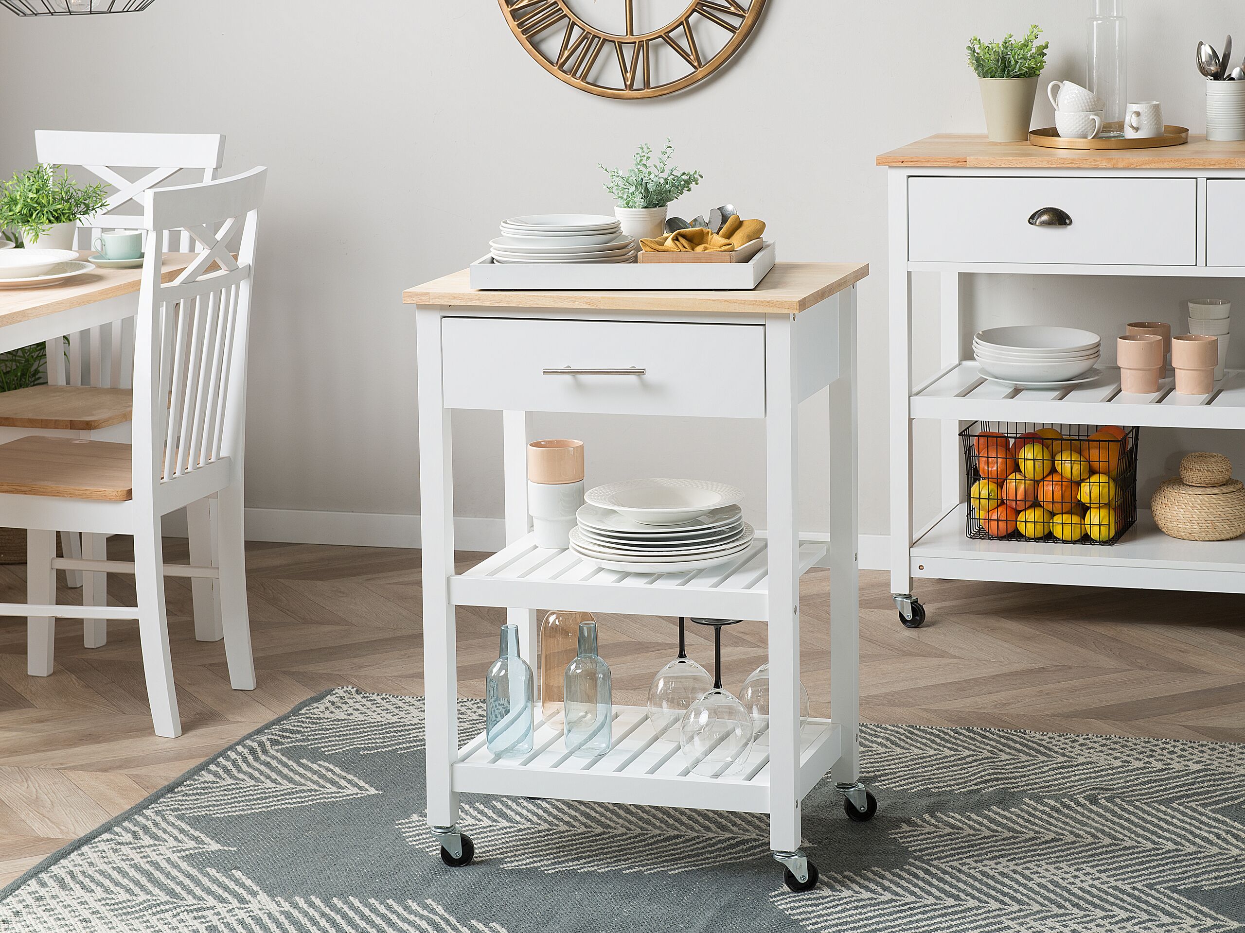 Beliani - HIUMA - Keukentrolley - Wit - Rubberhout