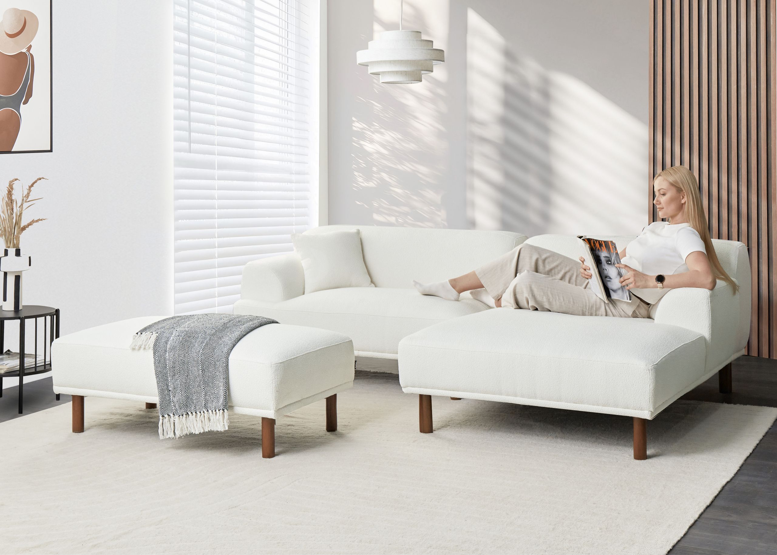 Beliani - HOLT - Hoekbank met ottomaan - Taupe - Linkszijdig - Bouclé
