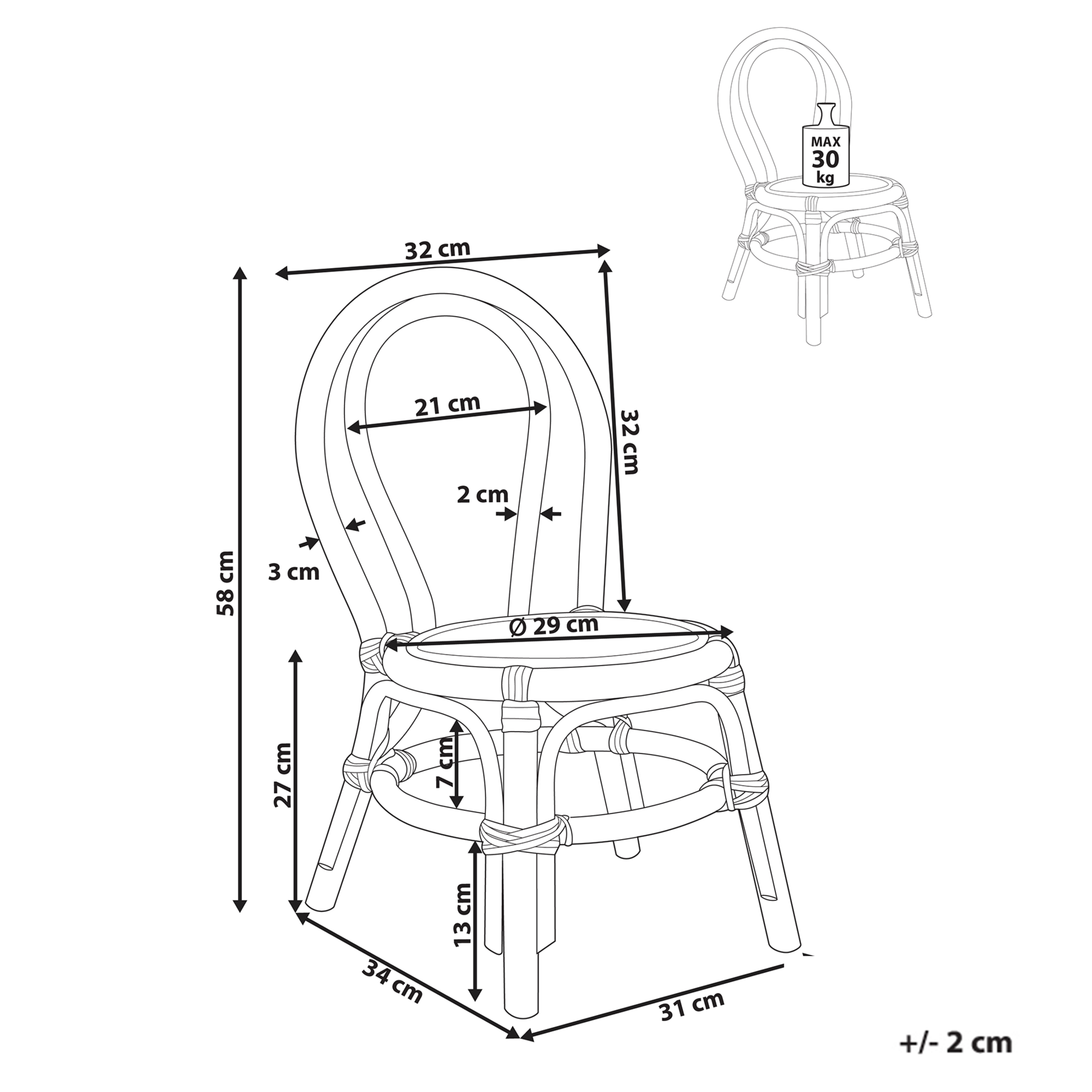 | Maximale draagkracht | 30 kg |