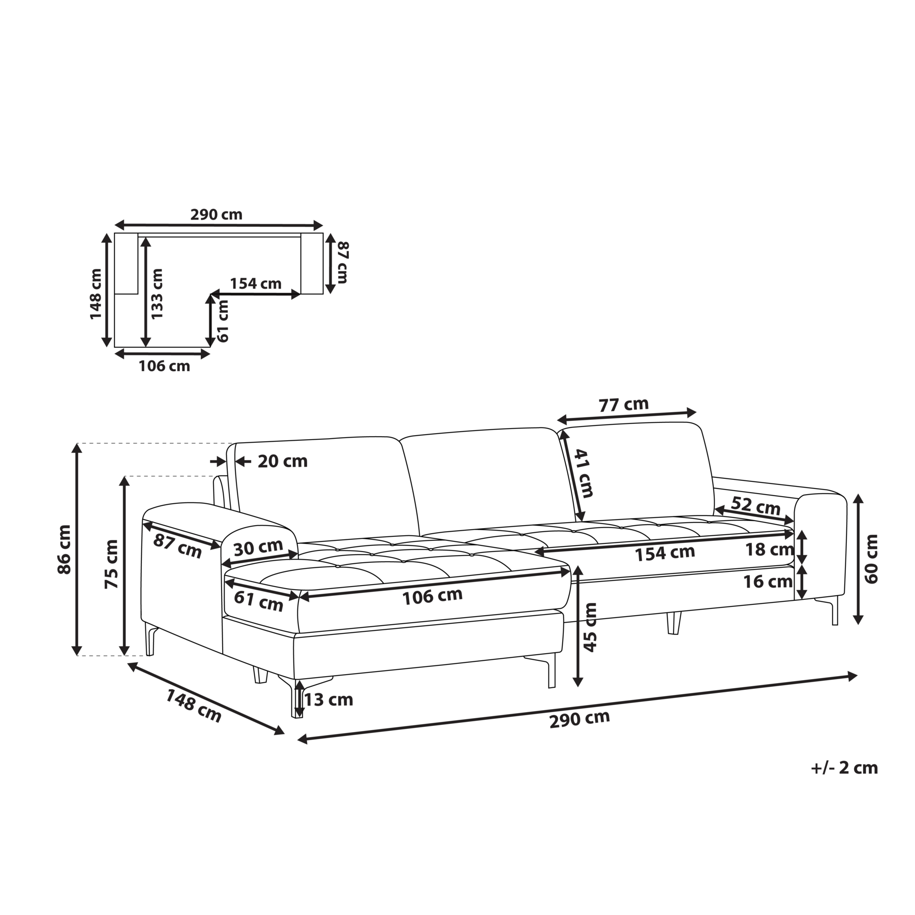 | Maat | 148x290x86 |