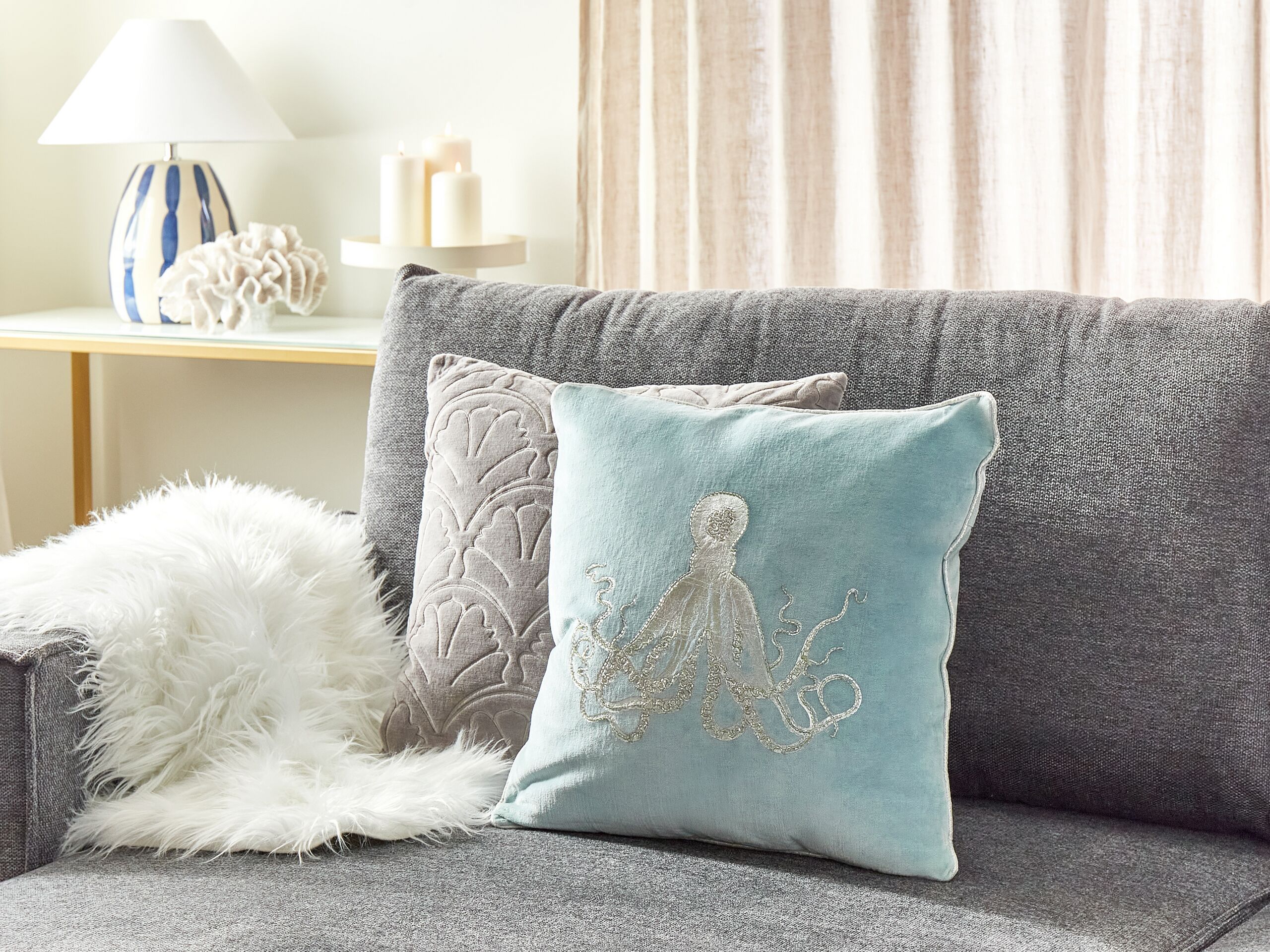 Beliani - LAMINARIA - Sierkussen - Blauw - 45 x 45 cm - Fluweel