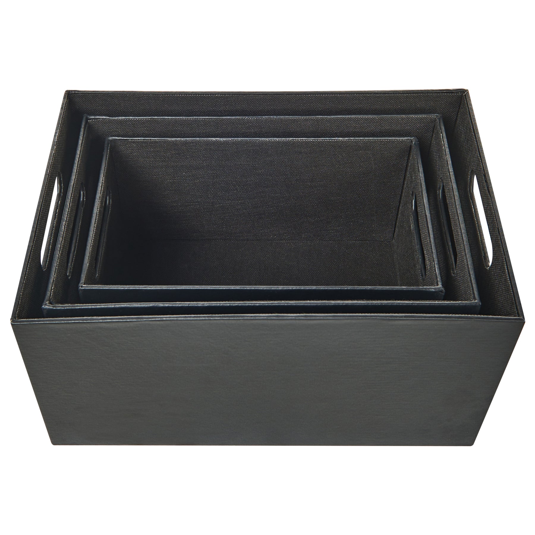 Beliani - LARSA - Opbergdozen set van 3 - Grafietgrijs - Kunstleer