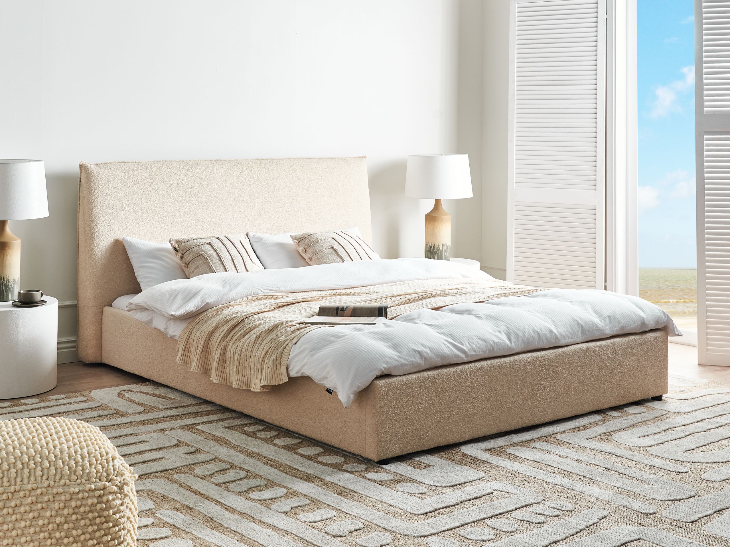 Beliani - LAVAUR - Tweepersoonsbed - Beige - 160 x 200 cm - Bouclé
