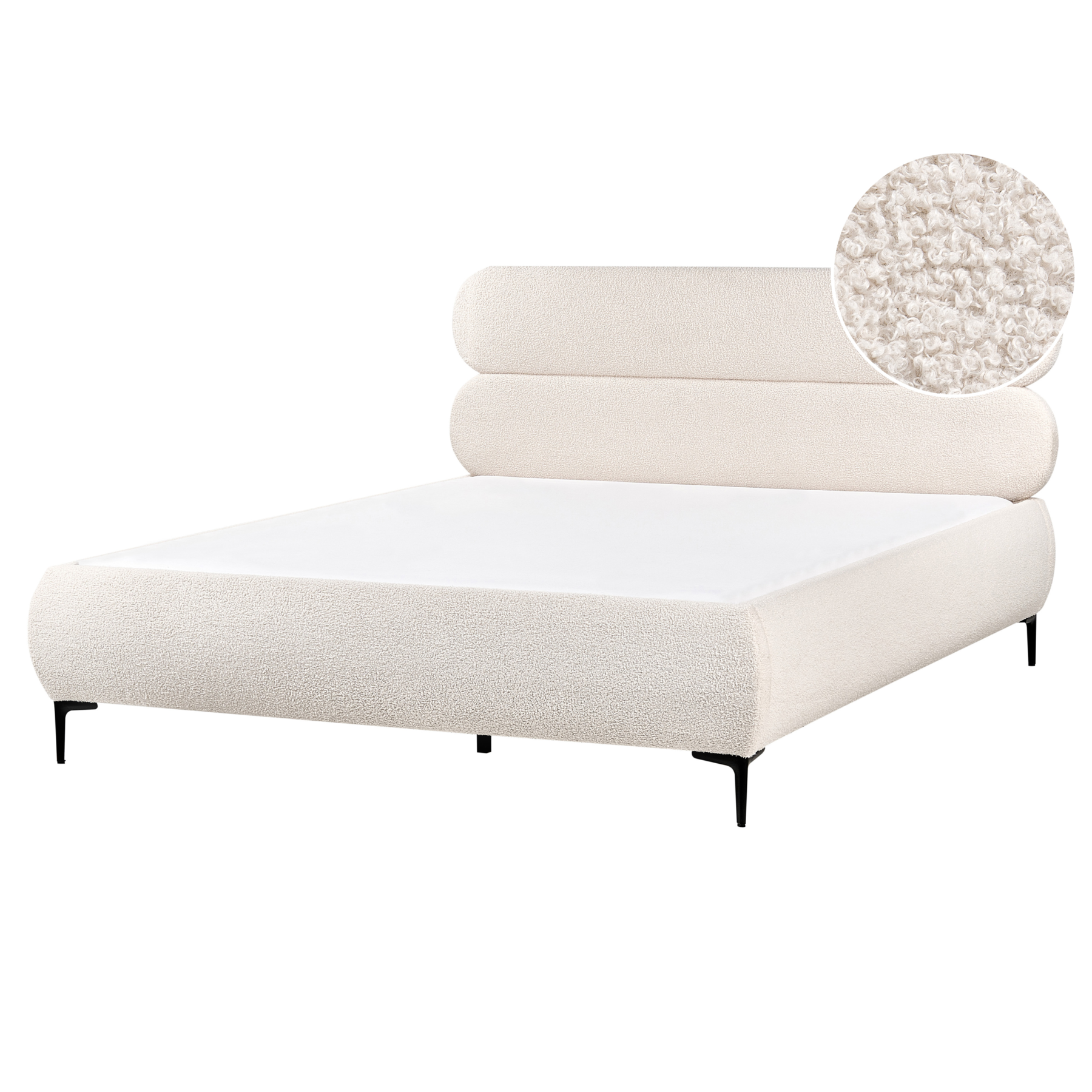 Beliani - LESSAY - Tweepersoonsbed - Off-white - 160 x 200 cm - Bouclé