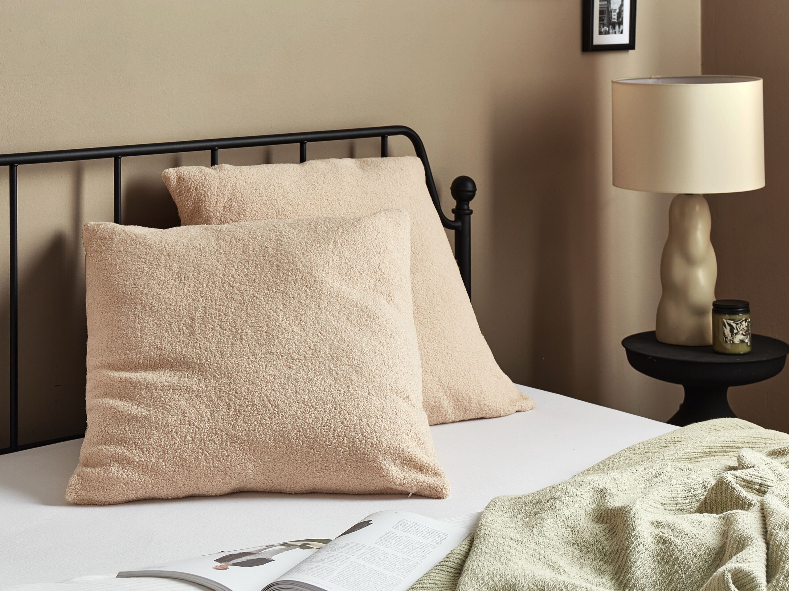 Beliani-LEUZEA-Sierkussen set van 2-Zandbeige-60 x 60 cm-Bouclé