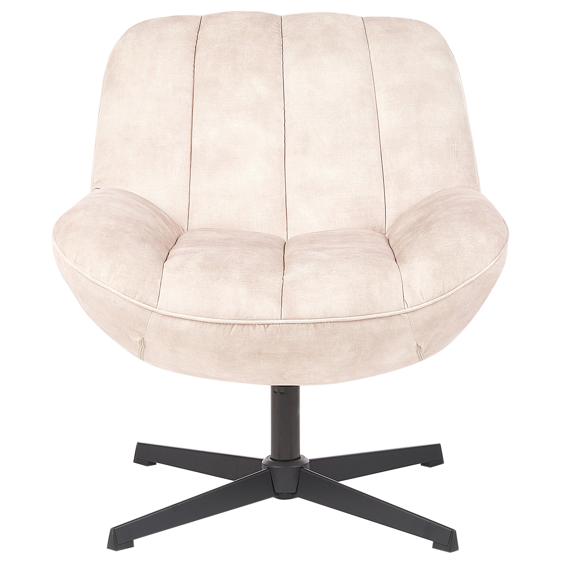 Beliani - LIA - Fauteuil met hocker - Beige - Fluweel