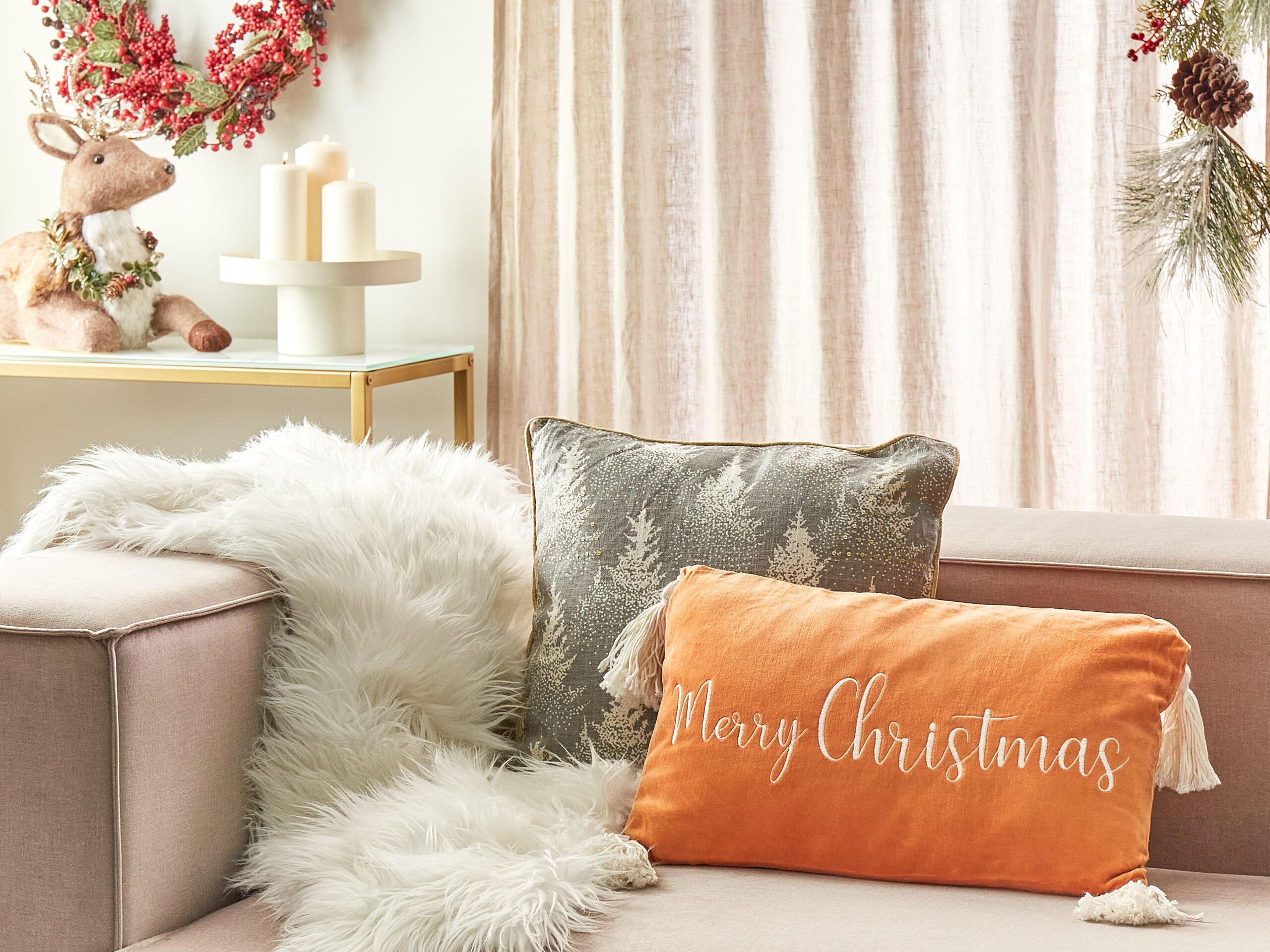 Beliani - LITHOPS - Sierkussen - Oranje - Fluweel