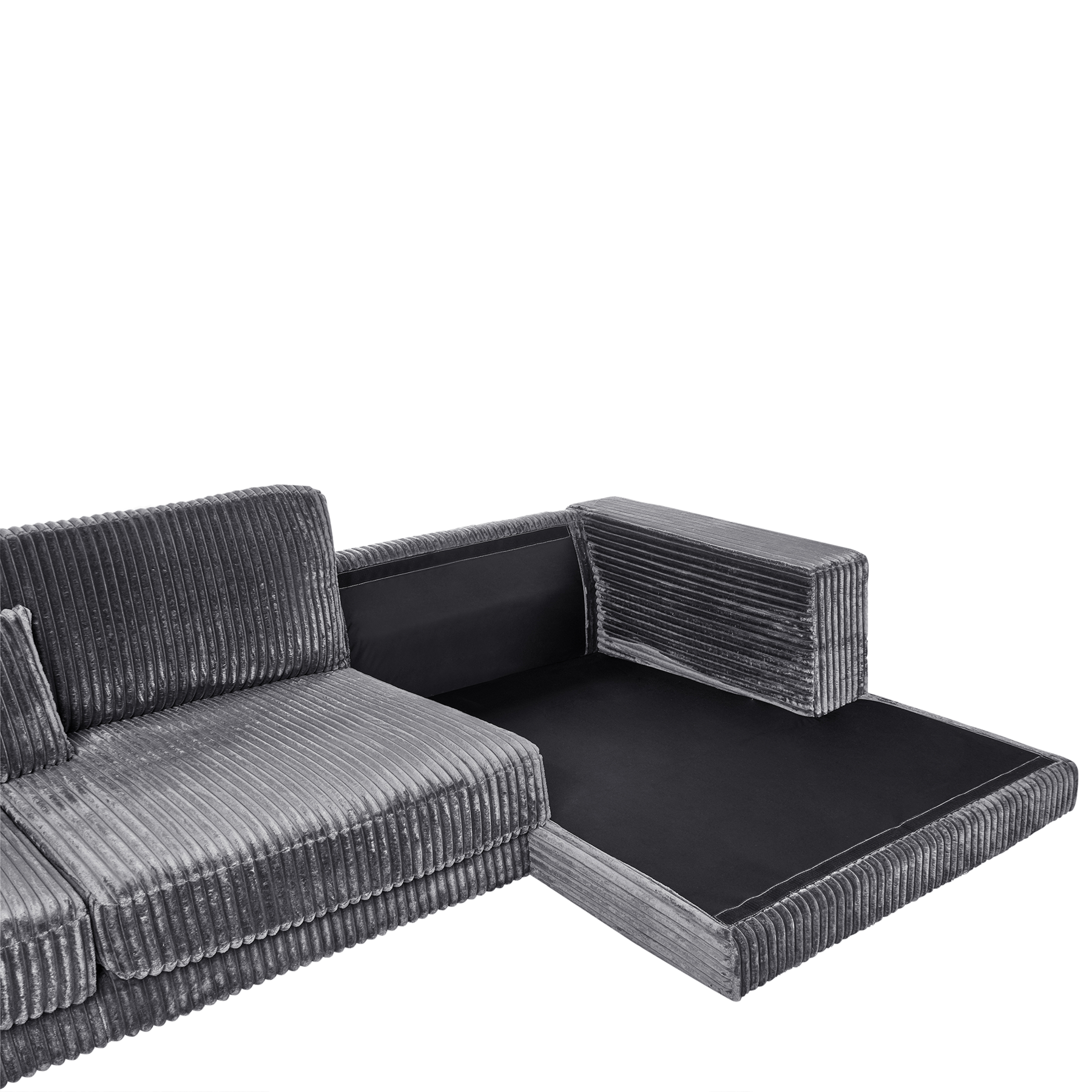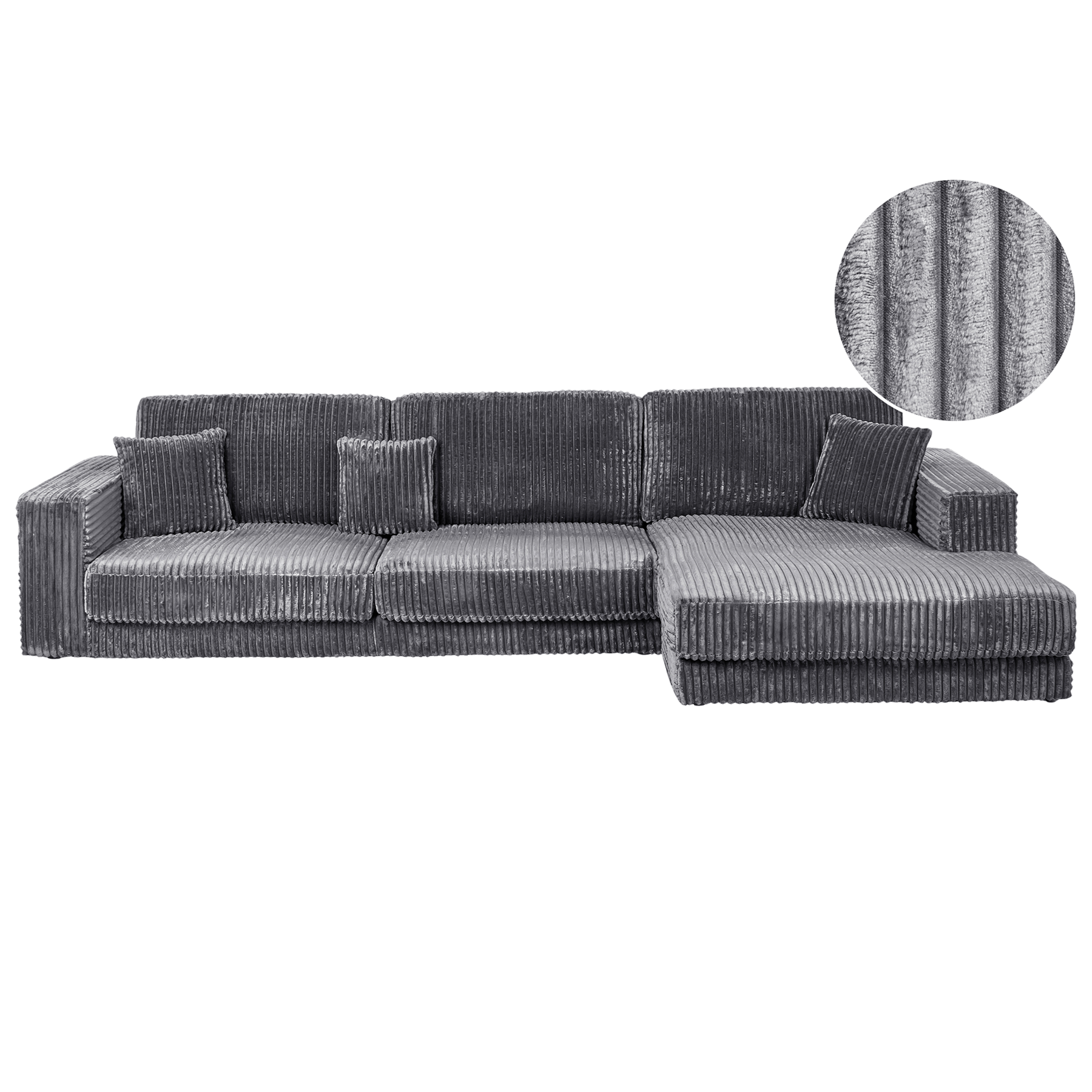 Beliani-LOFOTEN-Hoekbank 4-zits-Donkergrijs-Linkszijdig-Corduroy