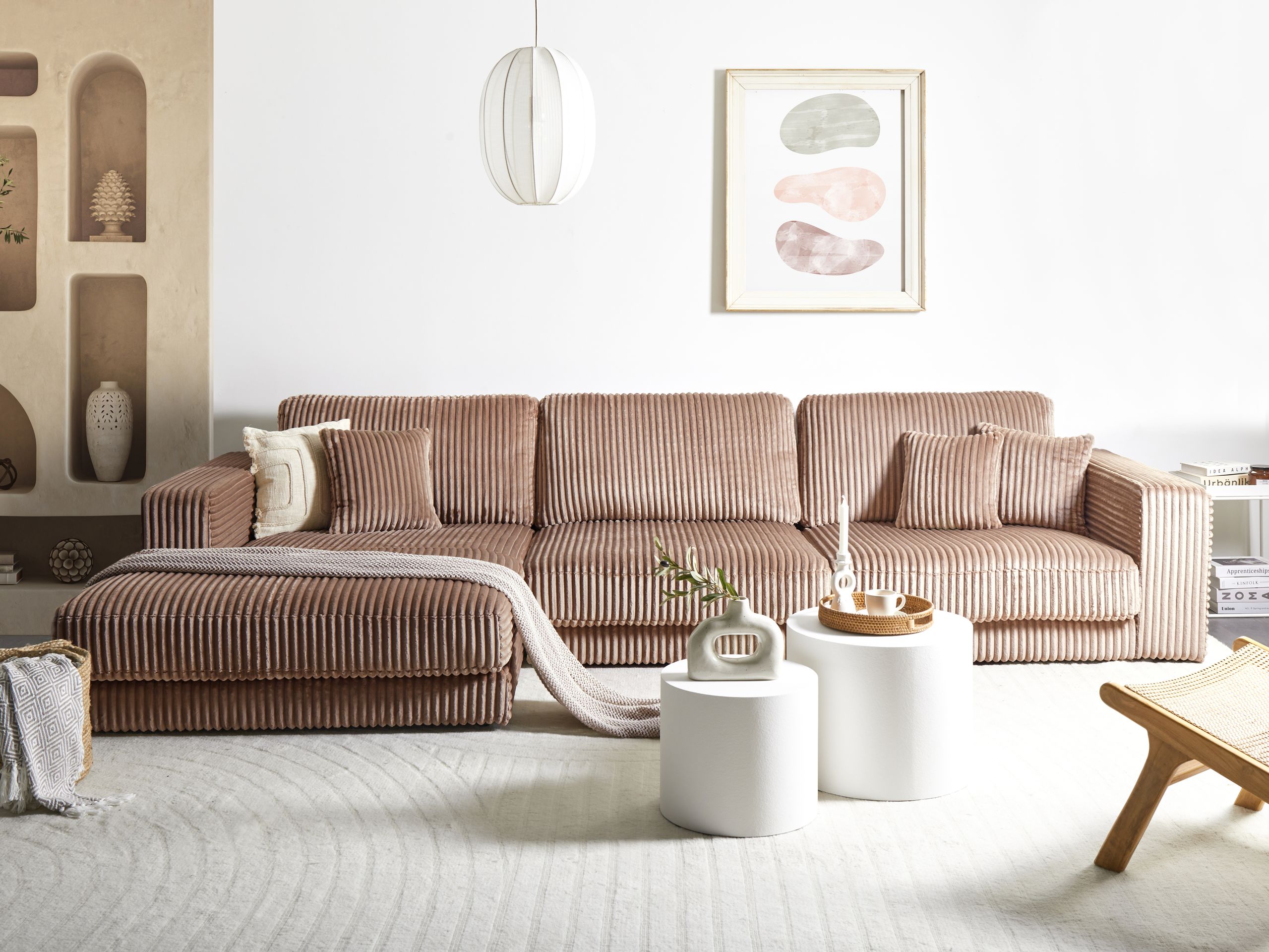 Beliani-LOFOTEN-Hoekbank 4-zits-Lichtbruin-Rechtszijdig-Corduroy