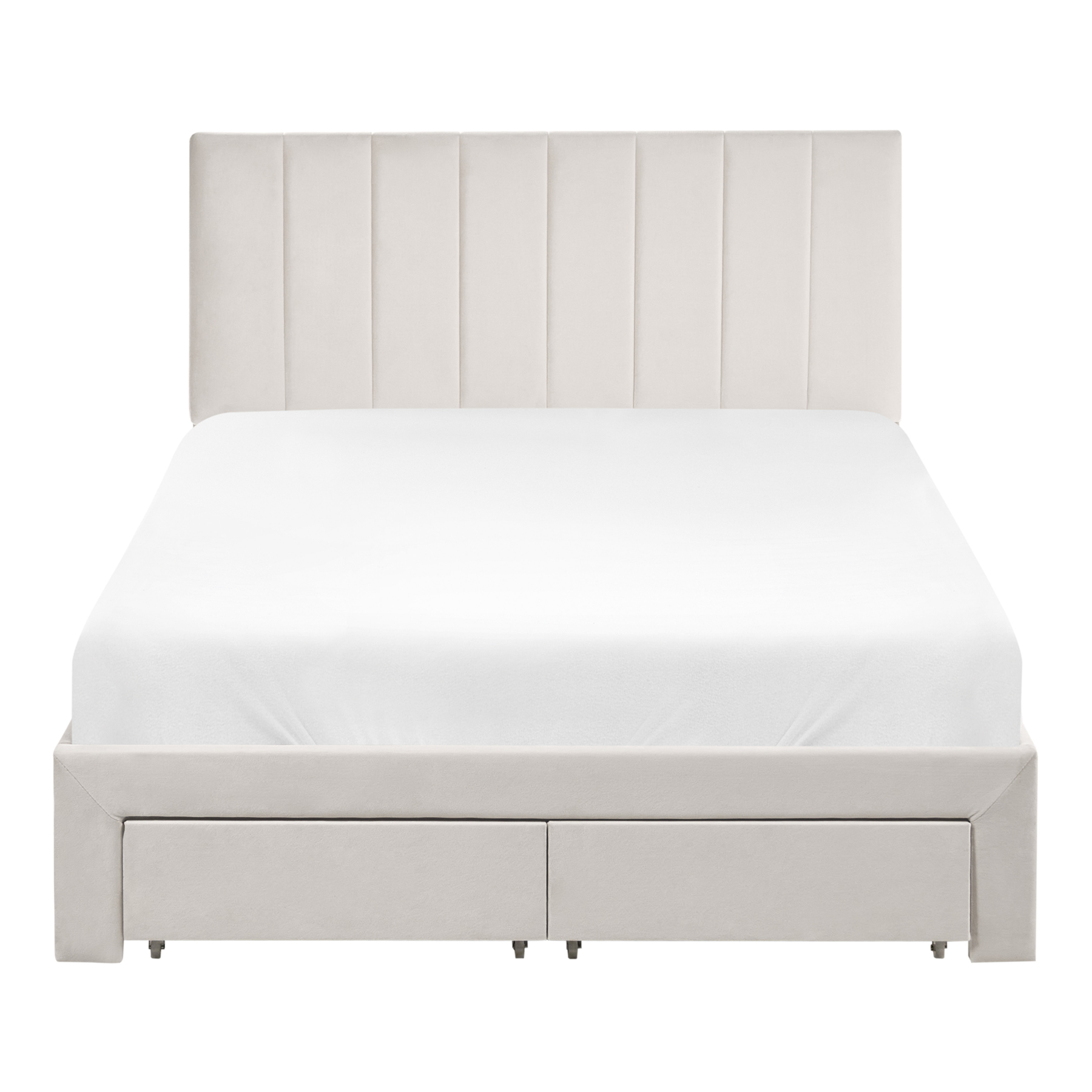 Beliani-LONZAC-Bed met opbergruimte-Gebroken wit-120 x 200 cm-Fluweel