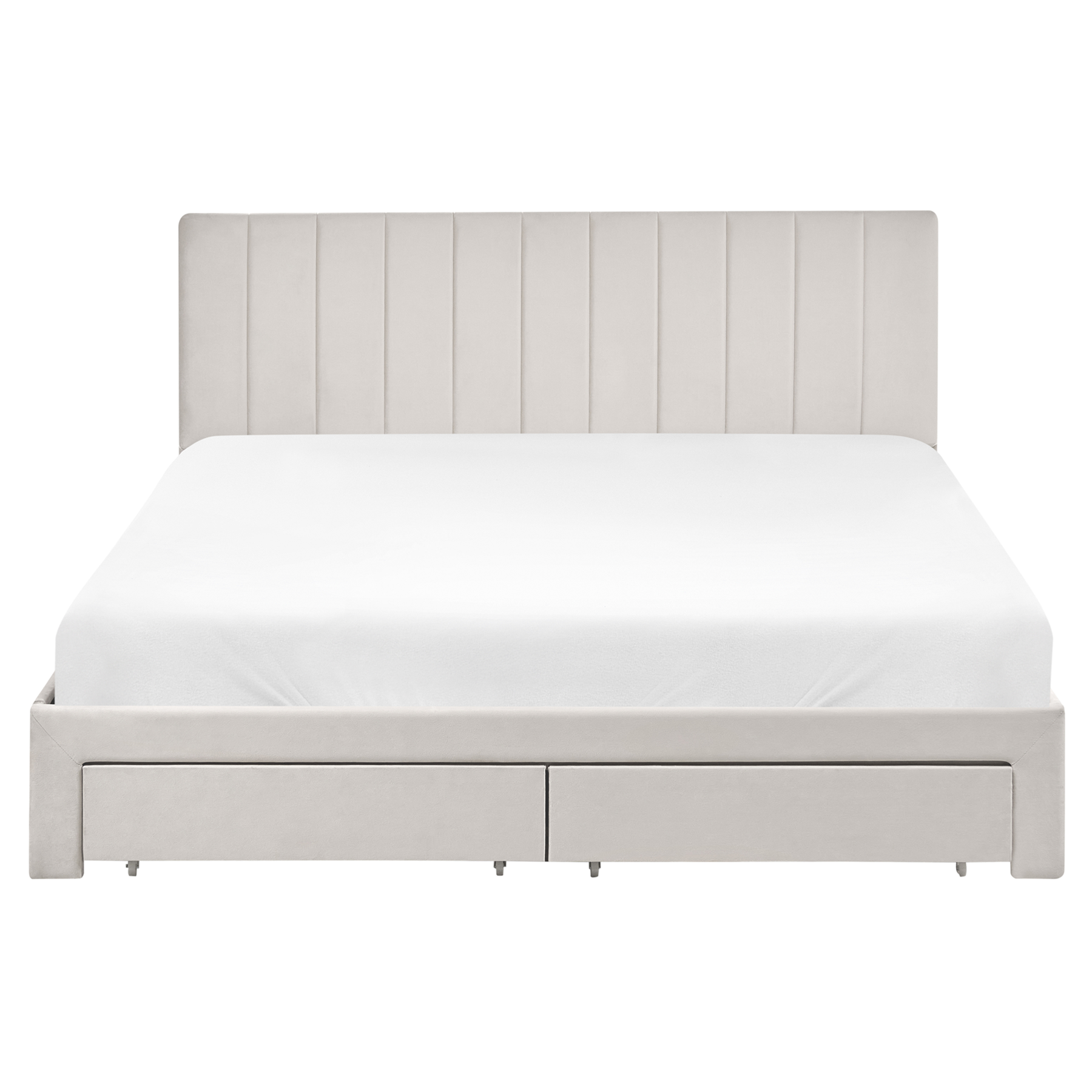 Beliani-LONZAC-Bed met opbergruimte-Gebroken wit-160 x 200 cm-Fluweel