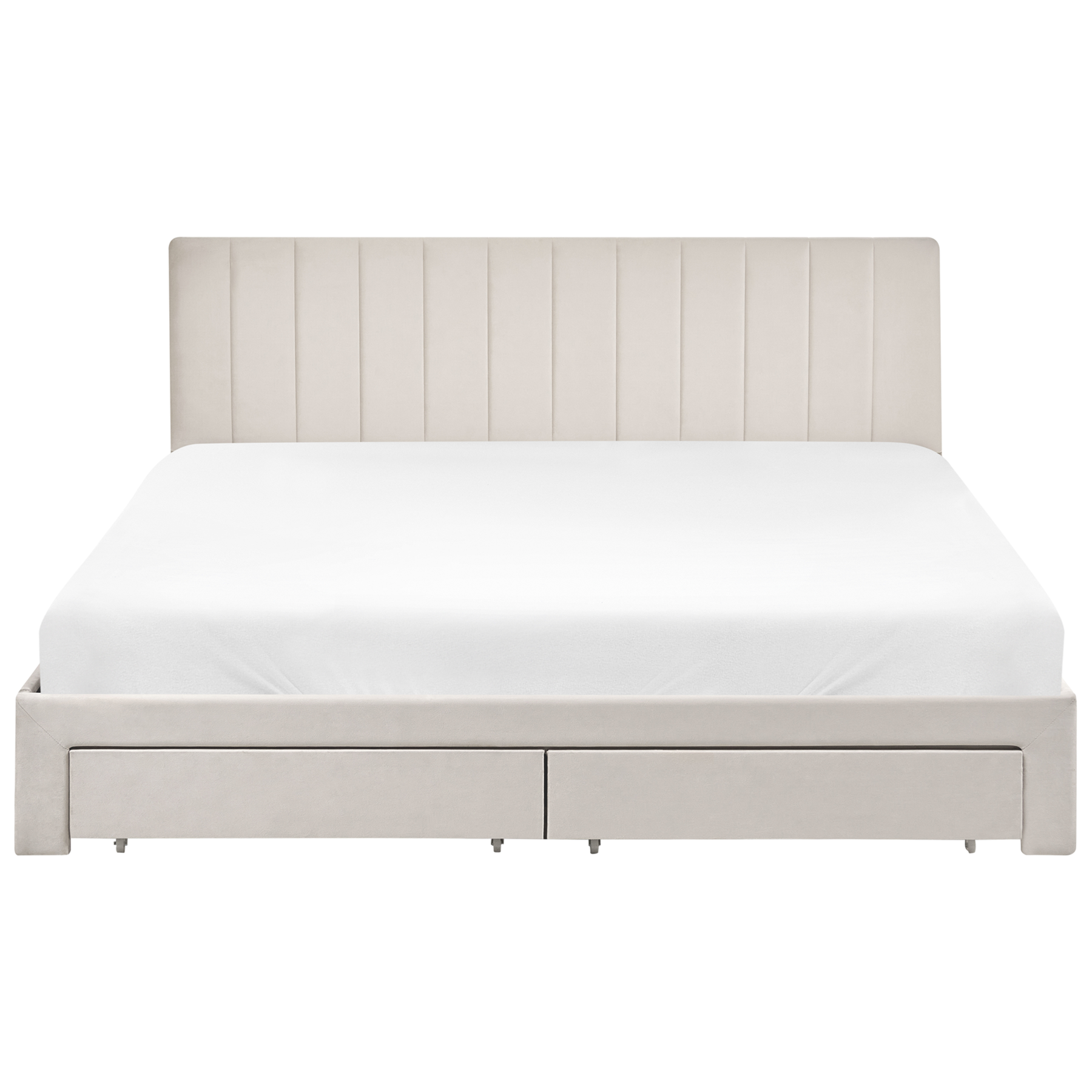 Beliani-LONZAC-Bed met opbergruimte-Gebroken wit-180 x 200 cm-Fluweel