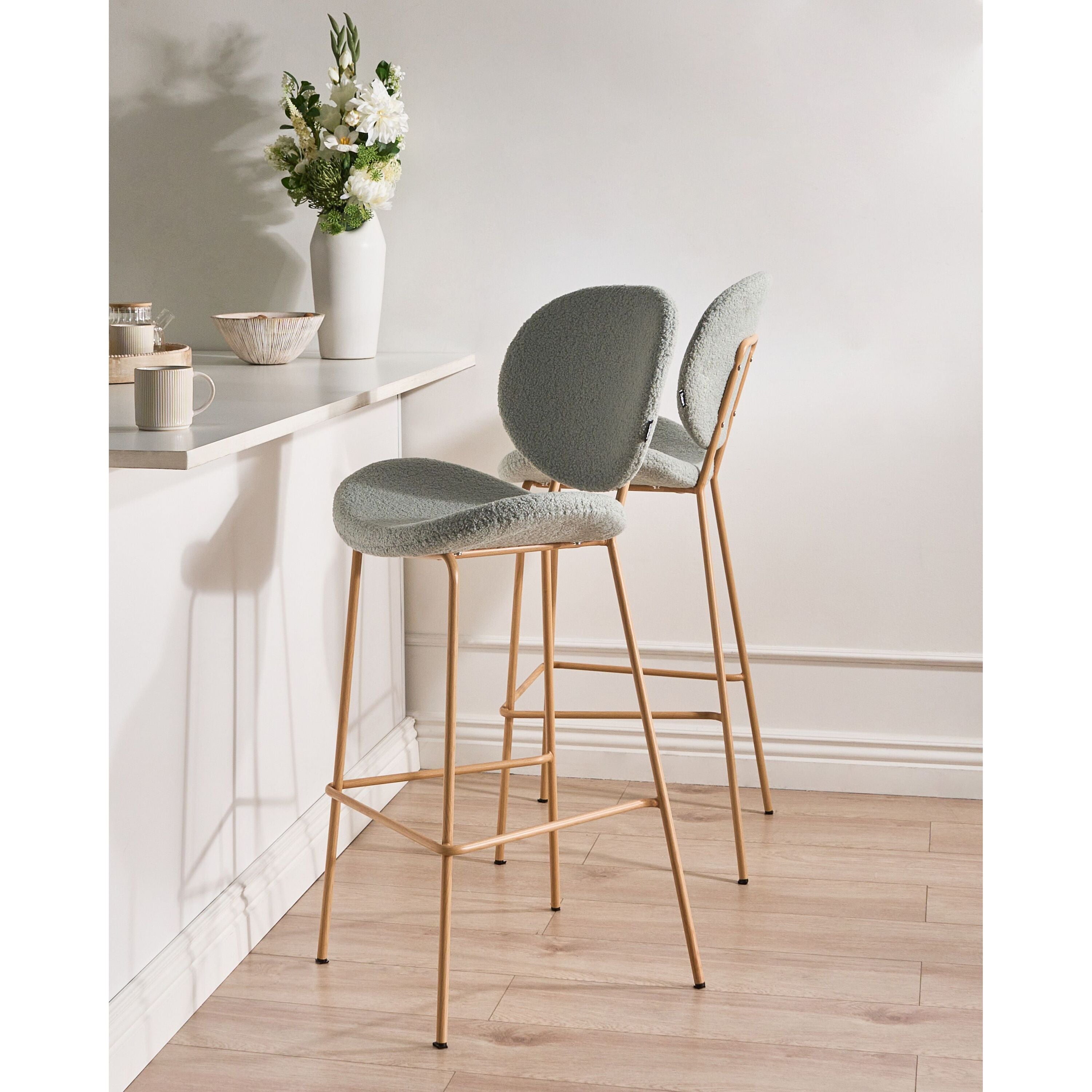 Beliani - LUANA - Barstoel set van 2 - Lichtgroen|Lichtbruin - Bouclé