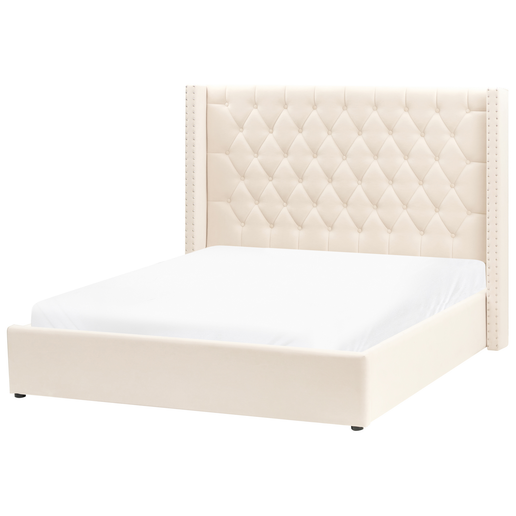 Beliani-LUBBON -Bed met opbergruimte-Crème wit-160 x 200 cm-Fluweel