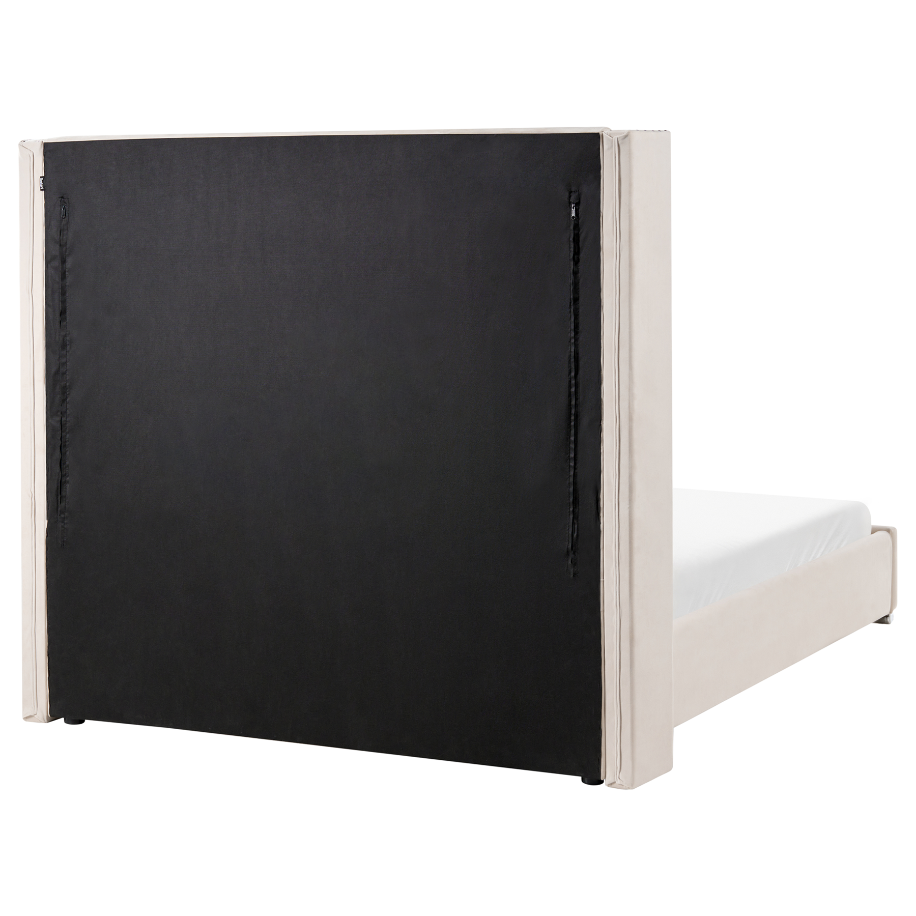 Beliani-LUBBON -Tweepersoonsbed-Gebroken wit-140 x 200 cm-Fluweel