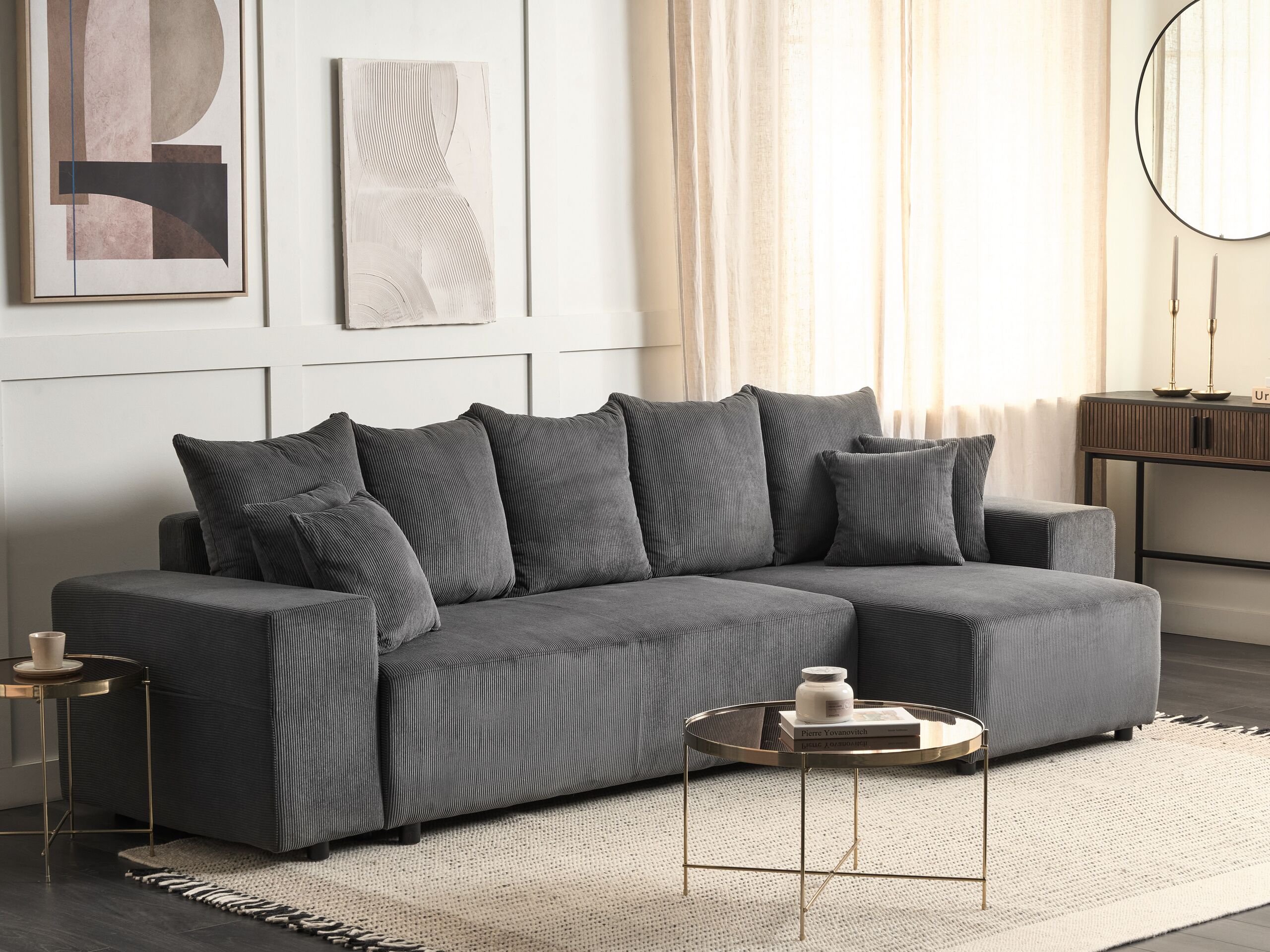 Beliani - LUSPA - Hoekbank - Donkergrijs - Linkszijdig - Corduroy