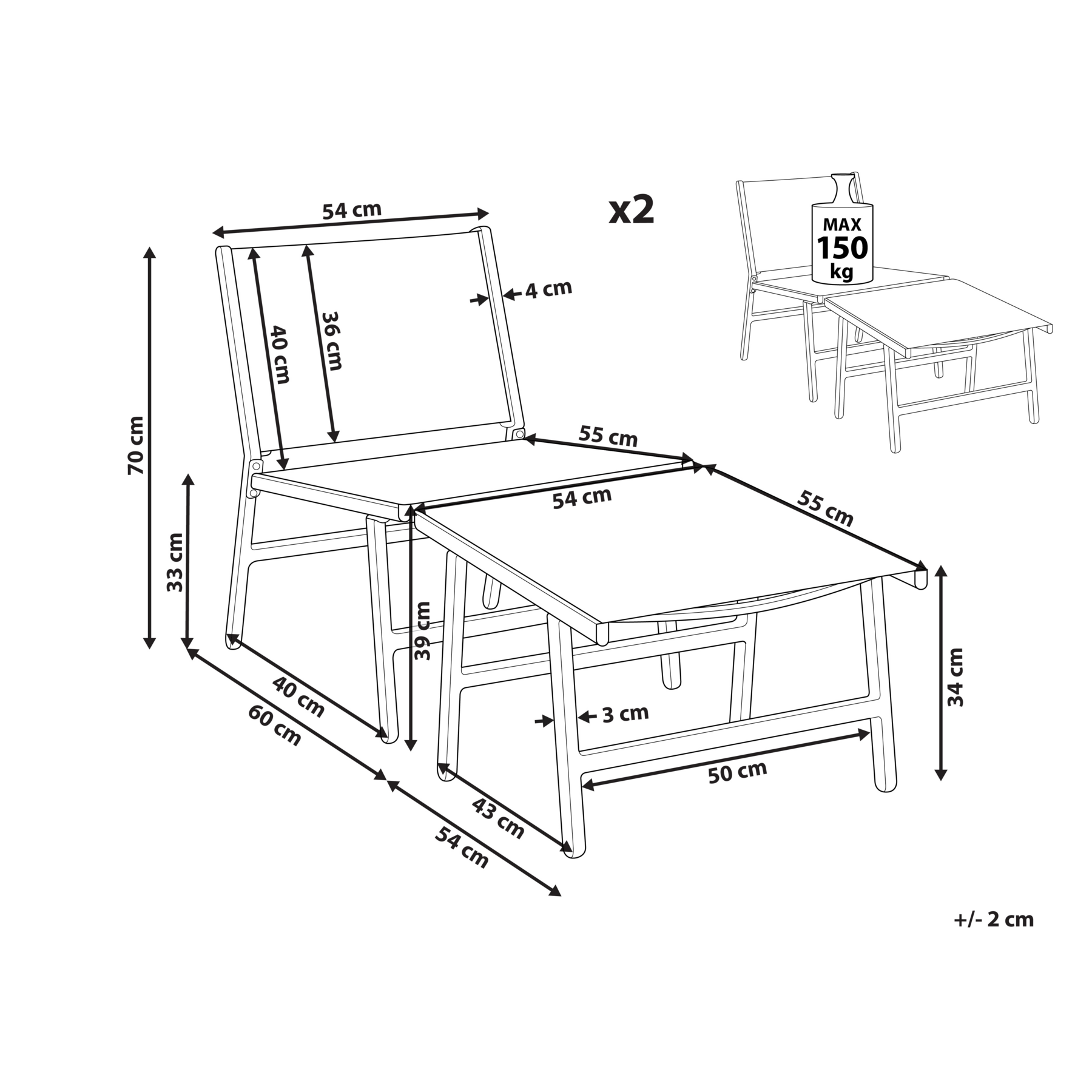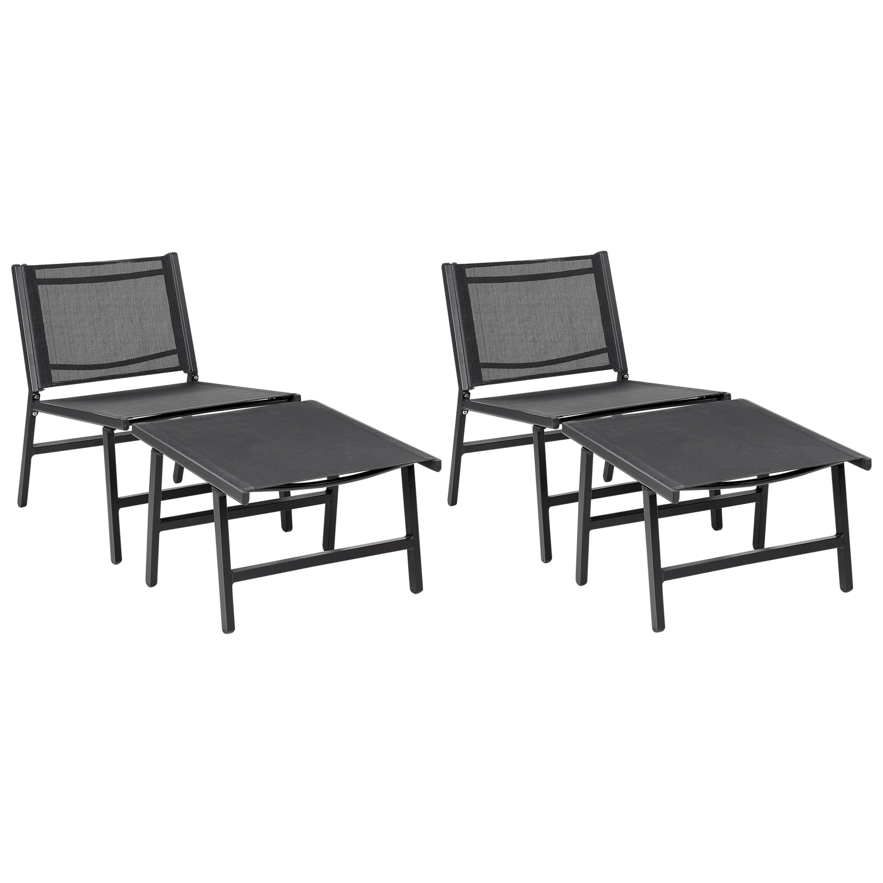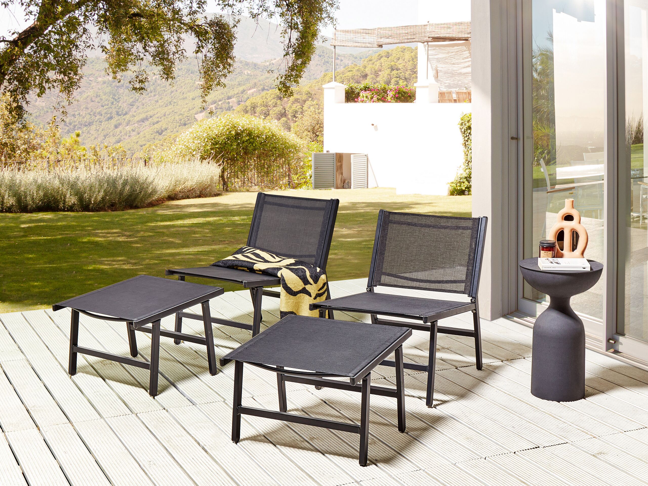 Beliani-MARCEDDI -Tuinstoel met voetenbank set van 2-Zwart-Textileen