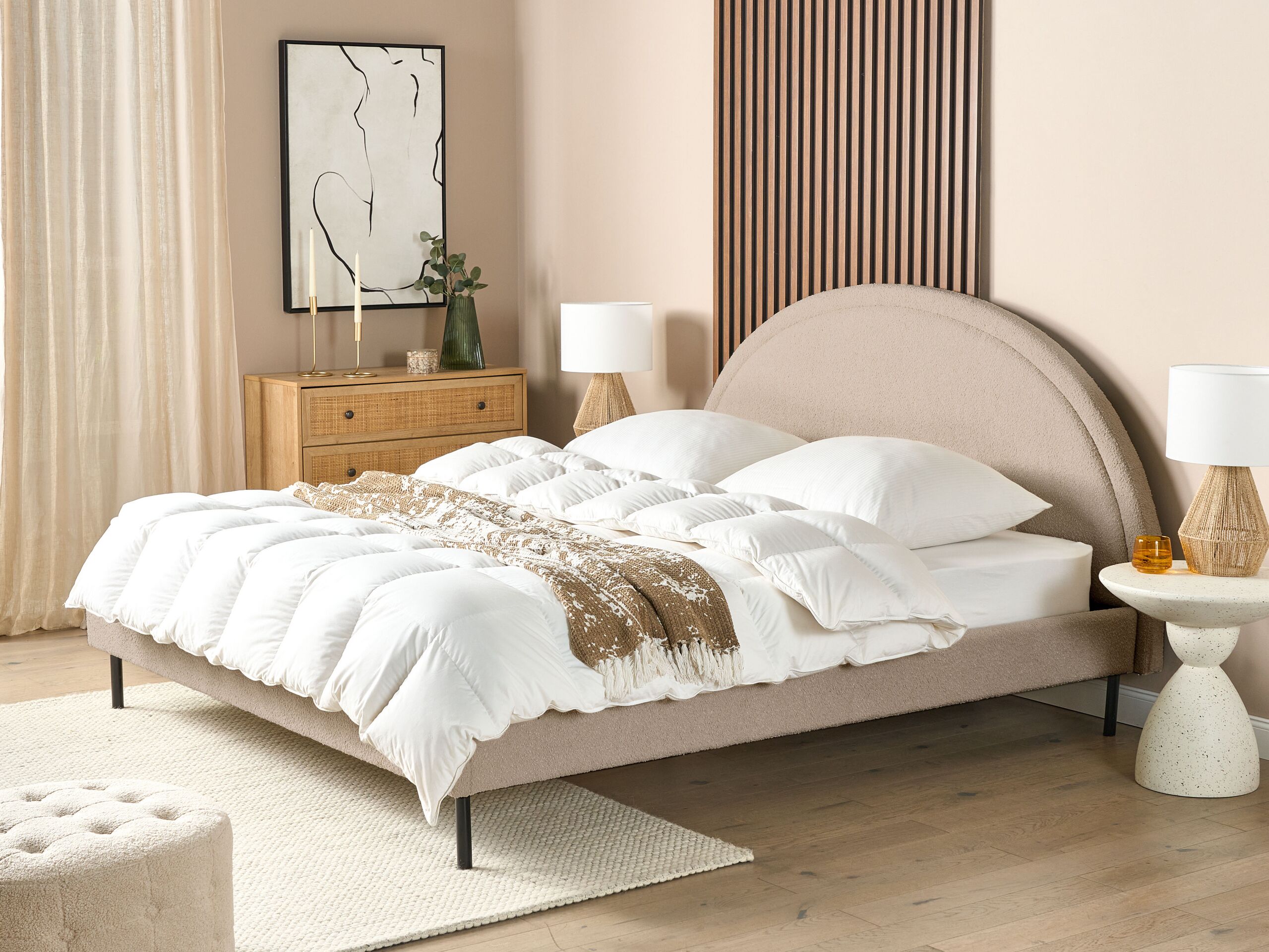 Beliani - MARGUT - Bed - Beige - 180 x 200 cm - Bouclé