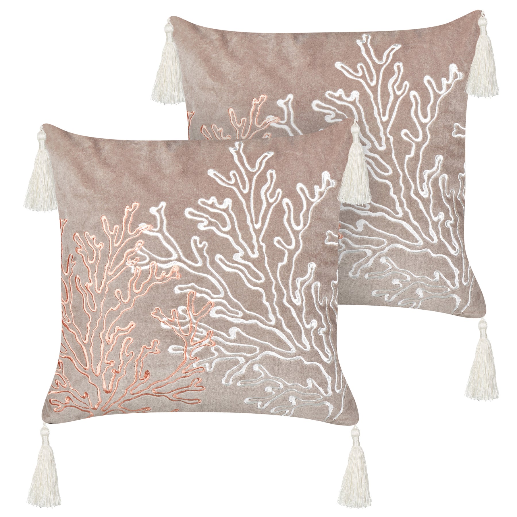 Beliani-MAZZAELLA-Sierkussen set van 2-Taupe-45 x 45 cm-Fluweel