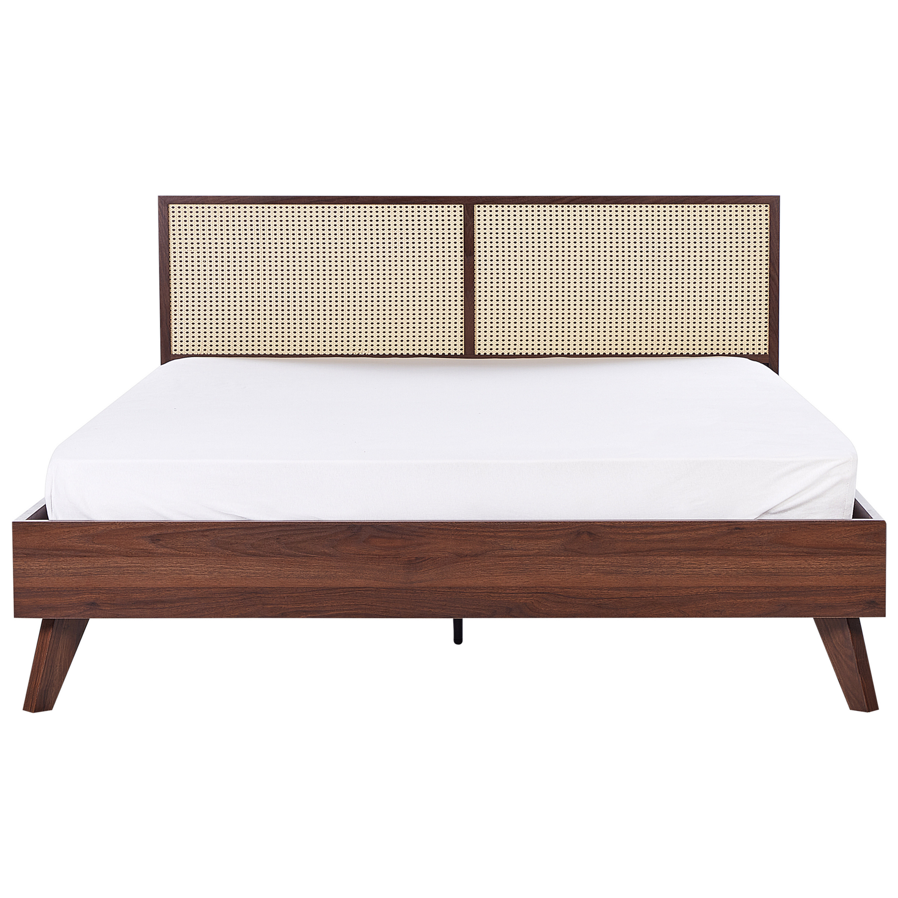 Beliani-MONPAZIER -Tweepersoonsbed-Donkerhout-180 x 200 cm-Rotan