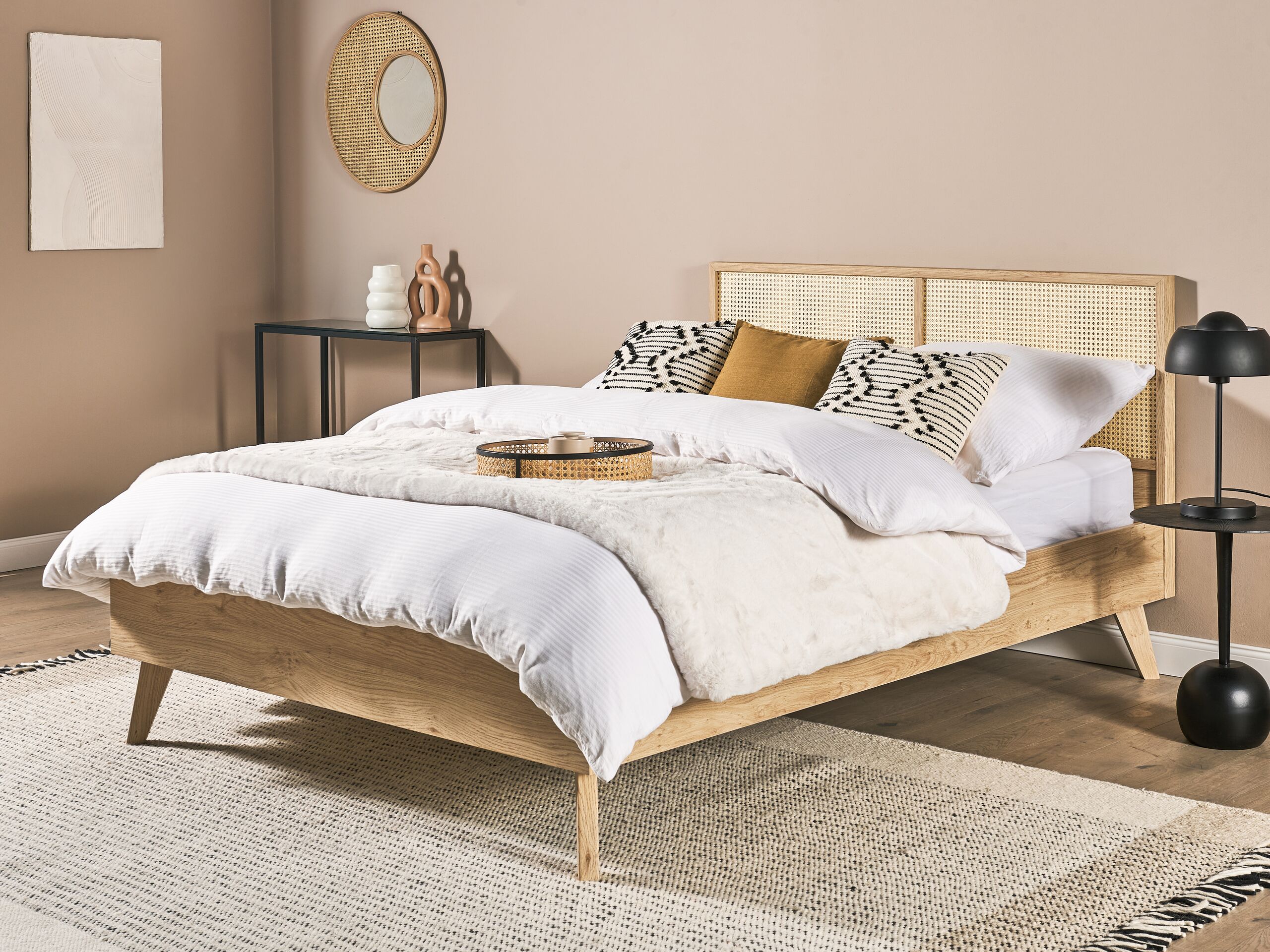 Beliani-MONPAZIER -Tweepersoonsbed-Lichthout-140 x 200 cm-Populierhout