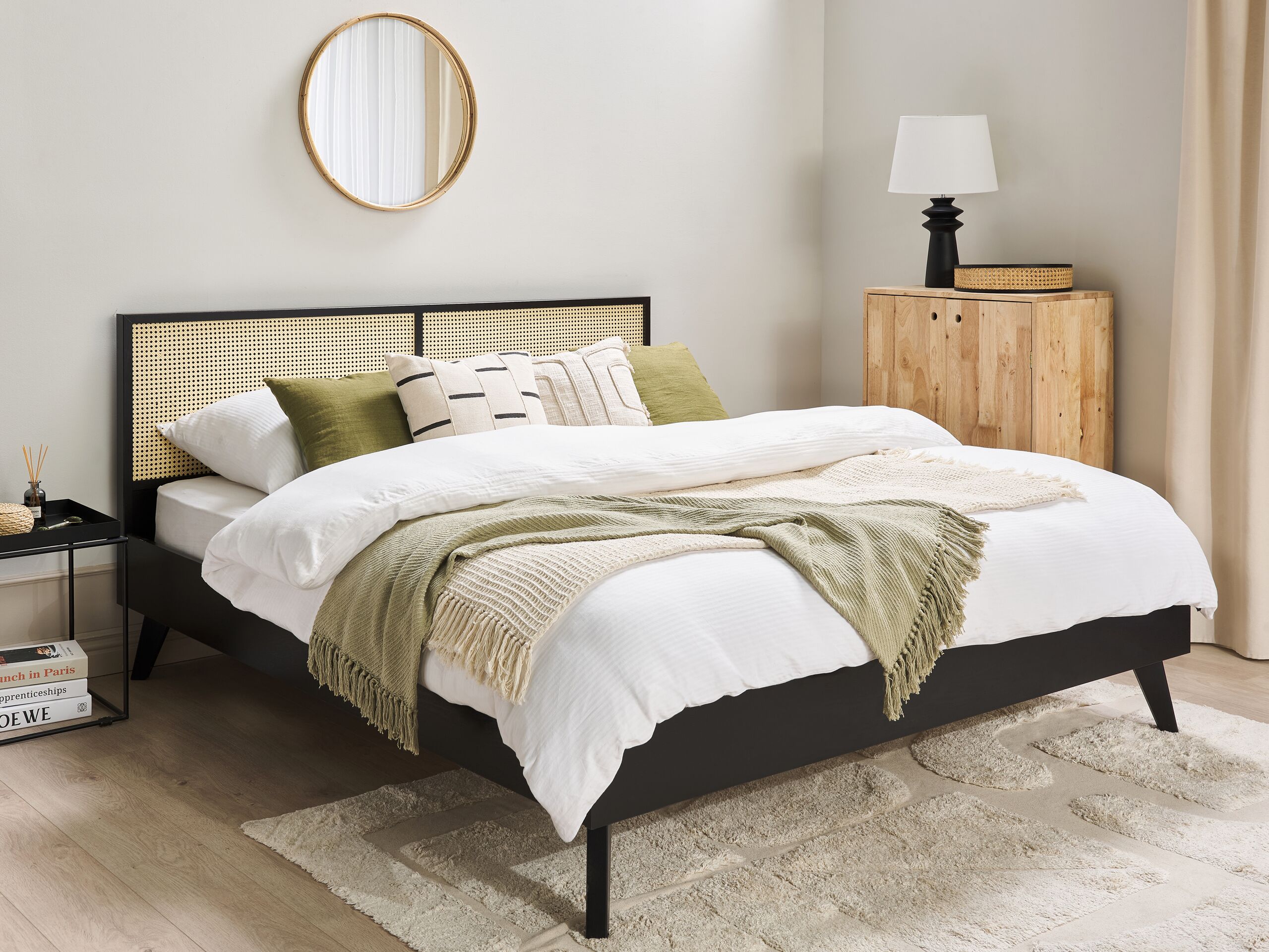 Beliani-MONPAZIER -Tweepersoonsbed-Zwart-180 x 200 cm-Populierhout